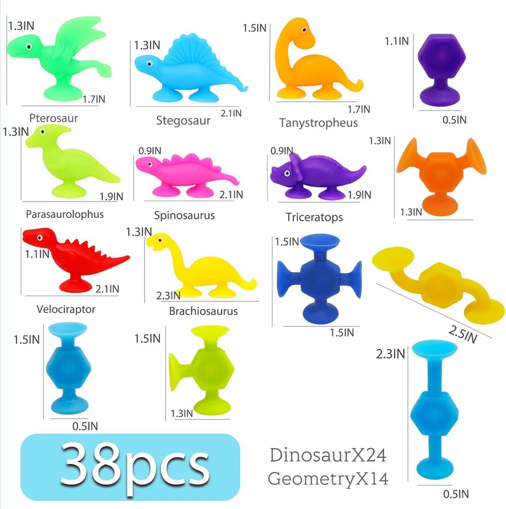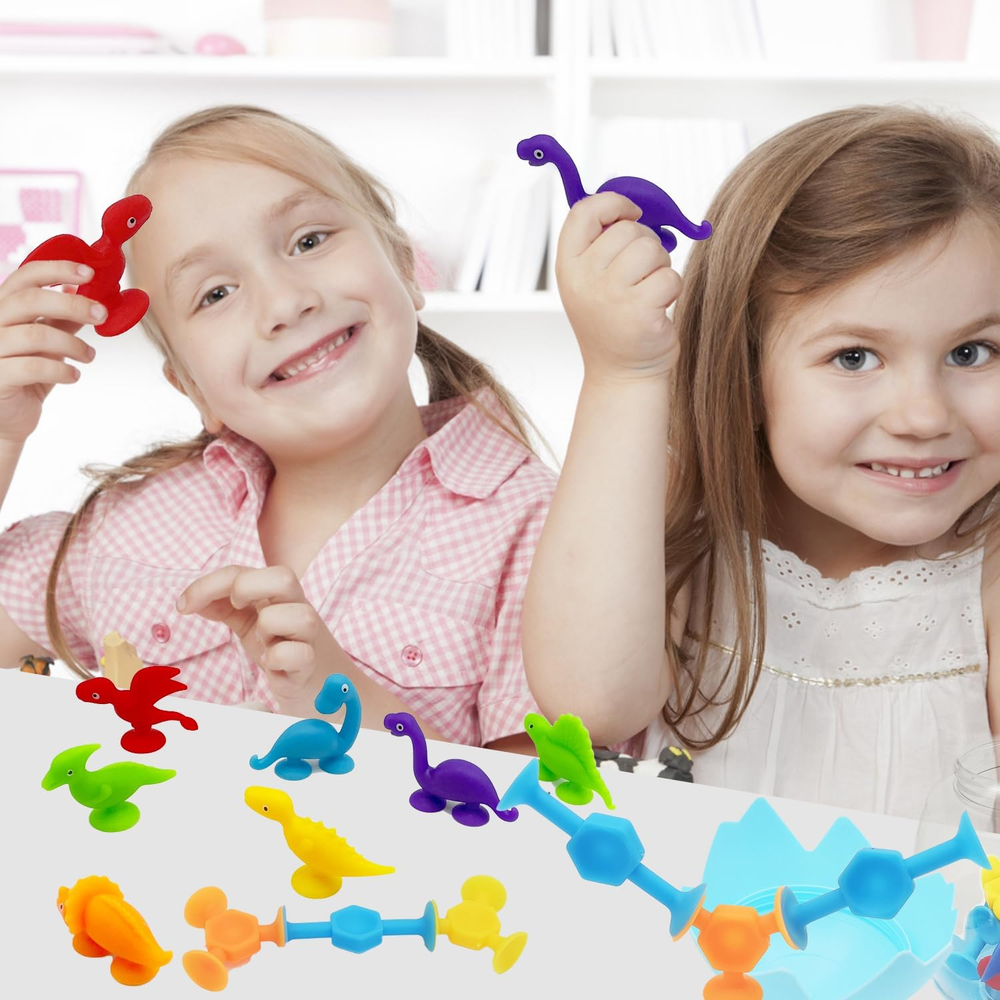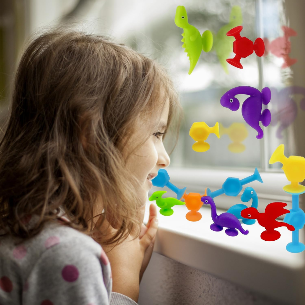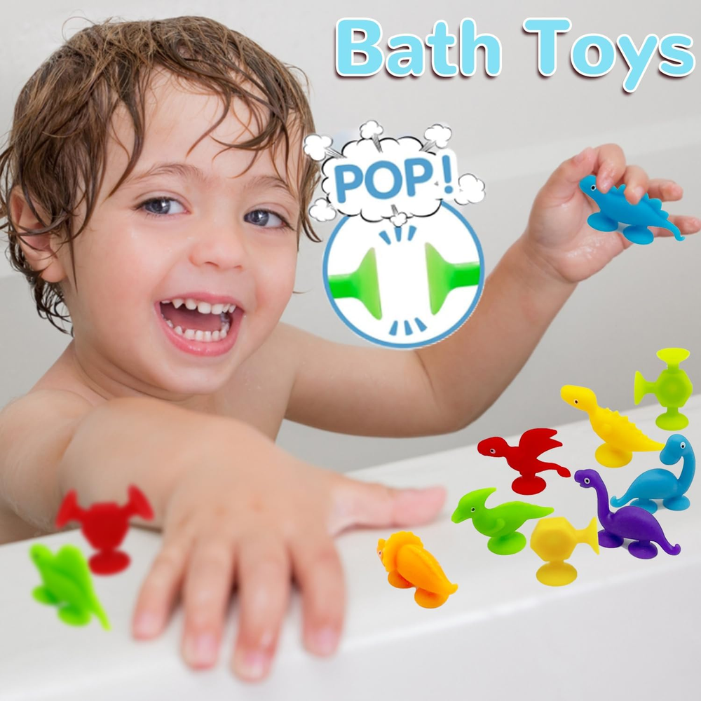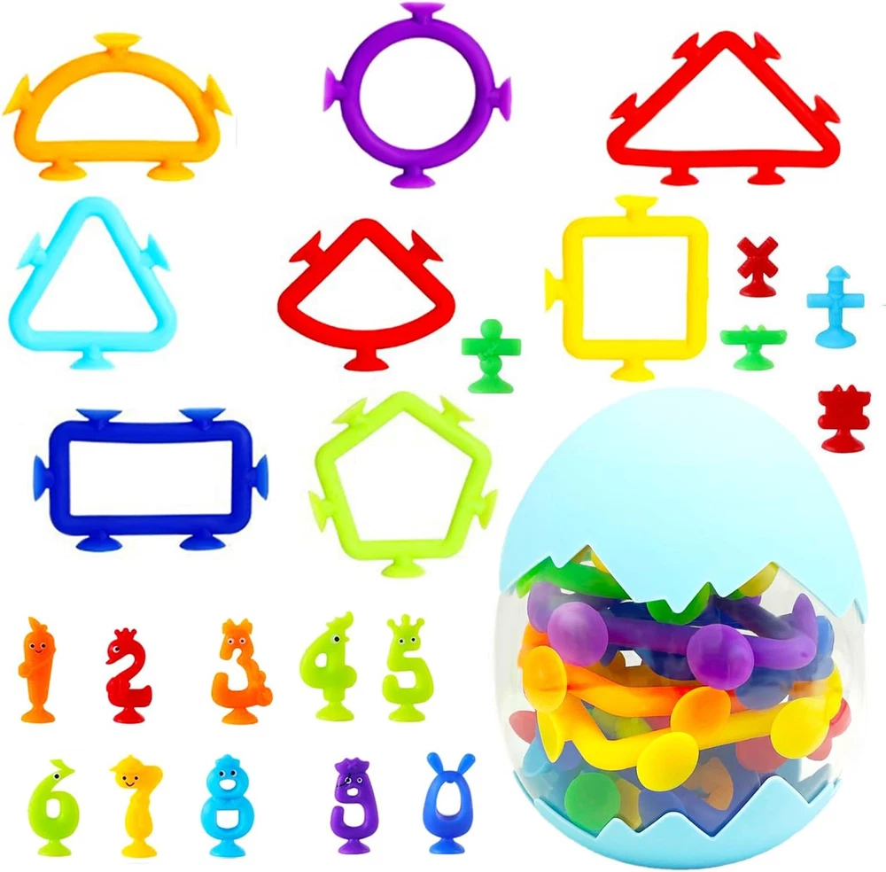 Creative Suction Toys : These are bath suction toys for kids ages 3-8,Be funny at Building ,stick, connect, hands eyes coordination , shape cognition ,color cognition ,spatial cognition,practical ability. A autism friendly of stress release toys, also an excellent learning resource. Multiple Ways to Play : Cute and entertaining suction cup toys Provides lots of fun for bath times, car trips, windows, school lockers, highchairs, or office desktops; suction toys leaves room for every kid's imagination. Suction Bath Toys for Kids : These silicone suction toys can be connected to each other with bottom cups in all directions, and can also be used in bathroom, window and while traveling. During the process of connection and removal, kids can hear pleasant POP sounds. Soaking in warm water for 3-5s, or moisturizing the bottom, the soft cup can produce stronger suction. Safe & Premium : The sensory sucker toys are made of non-toxic silicone, BPA free,No bad smell or any sharp edges and corners, is safe enough for babies aged 3 years old. Ideal Gifts for Kids : These very cute sucker toys are great stocking stuffers for kids that will bring big smiles and bring quality family time at Christmas. It's also great as a prize for children's classrooms, birthday parties, and other party favors. Product Description Toddler Educational Develop Toys Parent-child Interaction This Montessori suction cups toy set encourages parent-child interaction in play. Parents can explore different ways of suction toys, and bring more companionship and happiness to their kids during the growing period of 4-8. Bath Toy Our suction cups are excellent for babies' bath time. After being dipped in water, the suction is stronger. It can float in the water or stick to the tub. Window Toy Kid can use their imagination to decorate window with suction cups.It leaves no marks when separated and does not damage the surface of the adsorbent. Travel Toy If toddlers is always noisy when traveling, suction cups will be a good choice!Cute animal shape can attract the baby's attention and keep baby quiet. Easy to Stick Easy to Storage Easy to Clean Ideal Gift for Kid 3+ Years Old Our sensory toy set come with an cute sucker toys equipped with egg storage. This portable and cute design is a great gift choice for 3 4 5 6 7 year old boys and girls on birthdays, Easter, National Child Day, Halloween and so on.