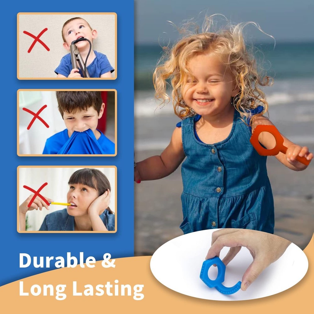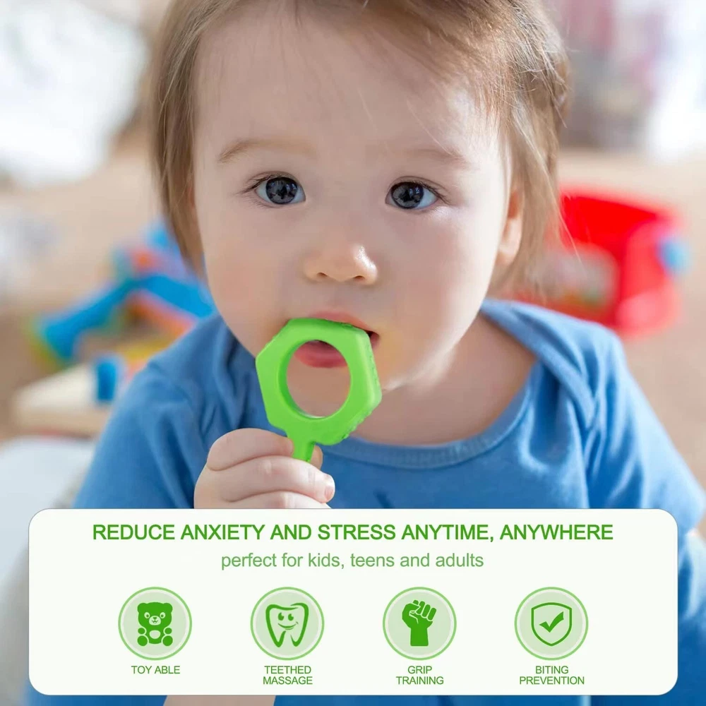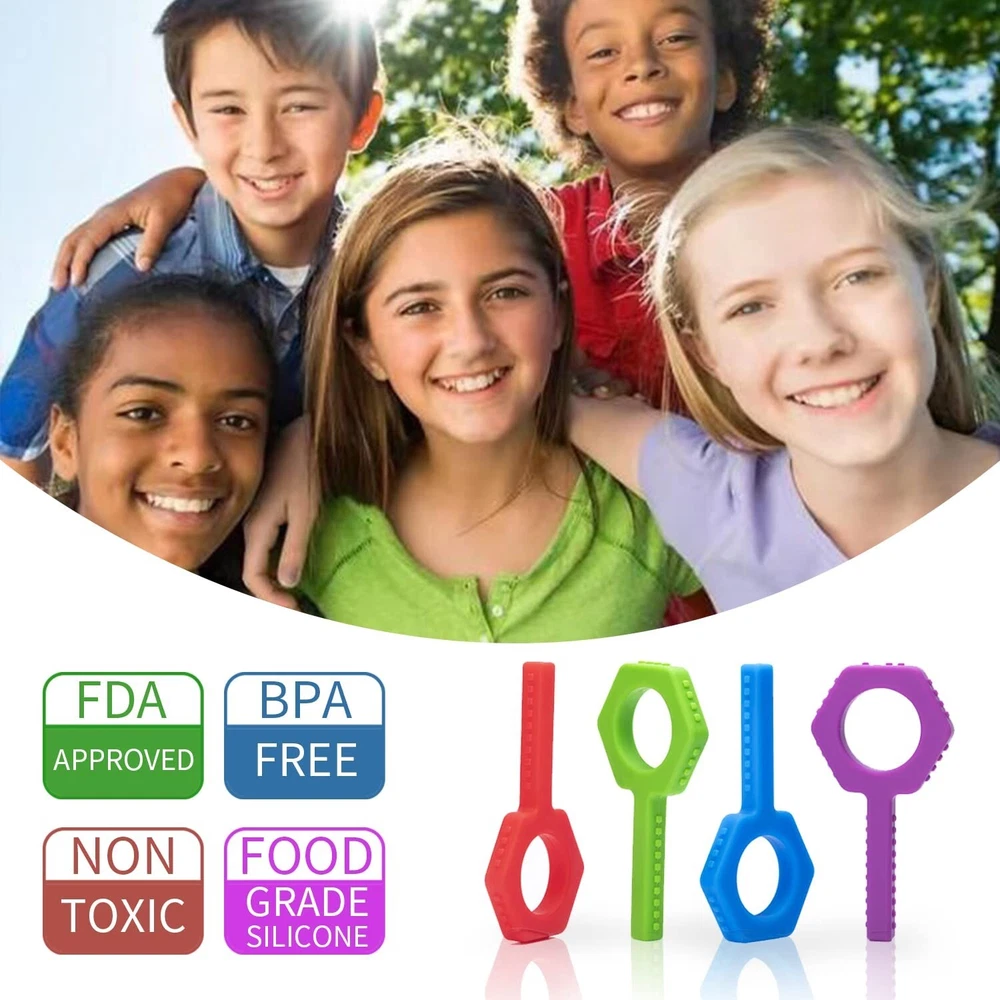 Sensory Chew Toys(Keys Shape) - 4Packs Chewy Tubes for Kids Sensory Needs, Teething Sticks Toys for Autism, ADHD, SPD, Silicone Made Multicolor Chewlery Tubes for Kids - Buy Now with Fast Shipping! Sensory Chew Toys(Keys Shape) - 4Packs Chewy Tubes for Kids Sensory Needs, Teething Sticks Toys for Autism, ADHD, SPD, Silicone Made Multicolor Chewlery Tubes for Kids Product Details Material: Silicone Color: Red, Green, Blue, Purple Brand: SOSKYGELO Material Type Free: BPA Free, Phthalate Free, Latex Free, Lead Free Item Weight: 0.07 Pounds Package Dimensions: 7.24 x 6.65 x 0.75 inches Item model number: SY014 Material Type: Silicone Material Composition: 100% Food Grade Silicone Material free: BPA Free, Phthalate Free, Latex Free, Lead Free Care instructions: Hand Wash Only Batteries required: No Item Weight: 1.04 ounces Key Features ✅ FOOD GRADE SILICON 100% made of food grade silicone, soft, durable and long-lasting. All of our sensory chew toyare tested BPA free, PVC free lead free and phthalates free. Our chewies for kids sensory are completely safe and non-toxic. Ensuring your child's safety is paramount. ✅ HELPS REDUCE STRESS - Chewlery teething toys are a safe and discrete alternative for individuals with sensory needs(Autism, Attention-Deficit / Hyperactivity Disorder ) to promote calm, soothe and focused. The autism chew toys sensory toy greatly reduce chewing pencils, hands, clothes, hairs etc ✅ STIMULATING SENSORY - Sensory chew toys with 4 difference colors and multilateral shapes are more likely to attract children's attention. Promote brain development and emotions-sparks creativity in children. ✅ MULTIPLE SHAPES and TEXTURES - The Chewy Tubes with Multilateral shapes and double unique texture met different sensory needs. When you hold the pentagon, you can get a Chewy Tube. When you hold the stick, you can chew like its a lollipop. So as provide extra oral motor input and helps reduce anxiety, soothe sore gums and stay focus. ✅ EASY to USE - The autism sensory toys is designed specifically for the right size. Very comfortable for kids to hold and chew. Just clean this sensory toys with water or mild soap after use, and hang to dry, so easy! Product Description