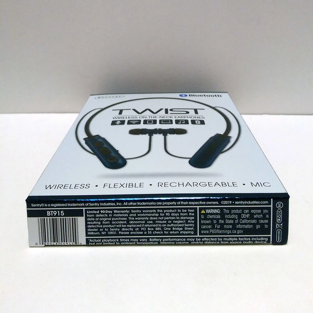 BRAND NEW Sentry Bluetooth TWIST Wireless ON-THE-NECK Earphone Headphones Earbuds Wireless-flexible-Rechargeable-Mic Key Features: One Sentry Bluetooth TWIST Wireless ON-THE-NECK Earphone Compatible with iPhone, Android and Tablets Stereo - Phones, Wireless, Controls, Computers, In-Line Mic, Recharge, Comfort Magnetic earbuds: Earbuds stay secure Microphone: hands Free talk Control Buttons: Wirelessly Operate devices Flexible Design: For a comfortable custom fit On-The-Neck Design: Lightweight and wireless Rechargeable Battery: Recharge via included USB Brand New Item # JC343471 Specifications: Driver Unit: 10mm Sensitivity: 104+/3dB Impedance 32 ohms Battery Li-ion Frequency: 20Hz-20KHz Version: Bluetooth 5.0 Rate Power:<100mW Playtime: Up to 2 hours of 50% volume VISIT OUR EBAY STORE FOR MORE ITEMS