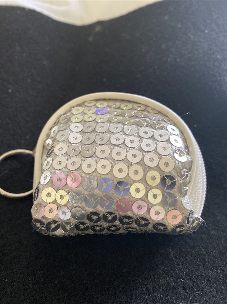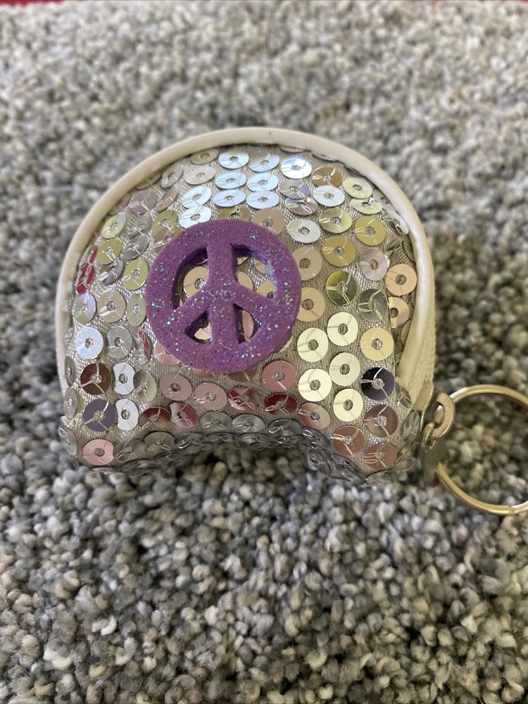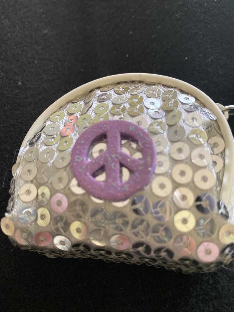 Vintage. Sequin covered PEACE Sign Change Coin Purse Wallet Zip Around Small Keychain. Shipped with USPS First Class.