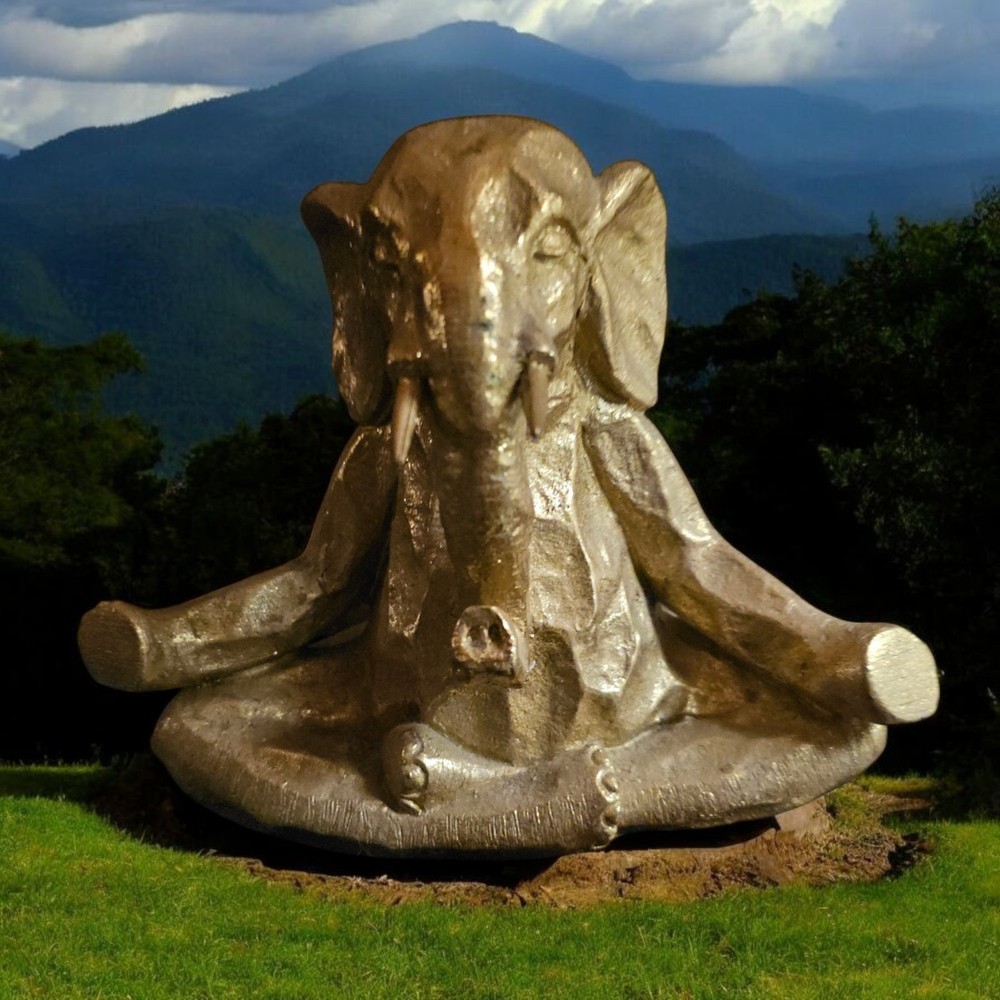 Serene Meditating Buddha with Elephant Statue
