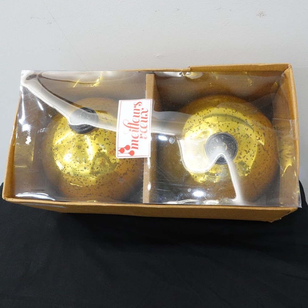 Welcome to my e B a y Store Serene Space Living 2 Piece Antique Gold Mercury Glass Ball Large Ornament with Bronze Cap Set Height - 7.5" Tall Diameter - 6" Circumference - 19.25" Weight - 10 Oz. approx. per ornament Bid With Confidence Feel Free to ask any questions before bidding please If you would like additional pictures please send me a message Check out my other listings for more great deals! 100% Authentic or your Money Back Guarantee!! Free Shipping on All Items!