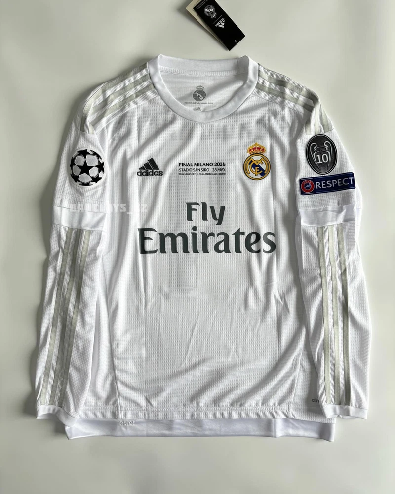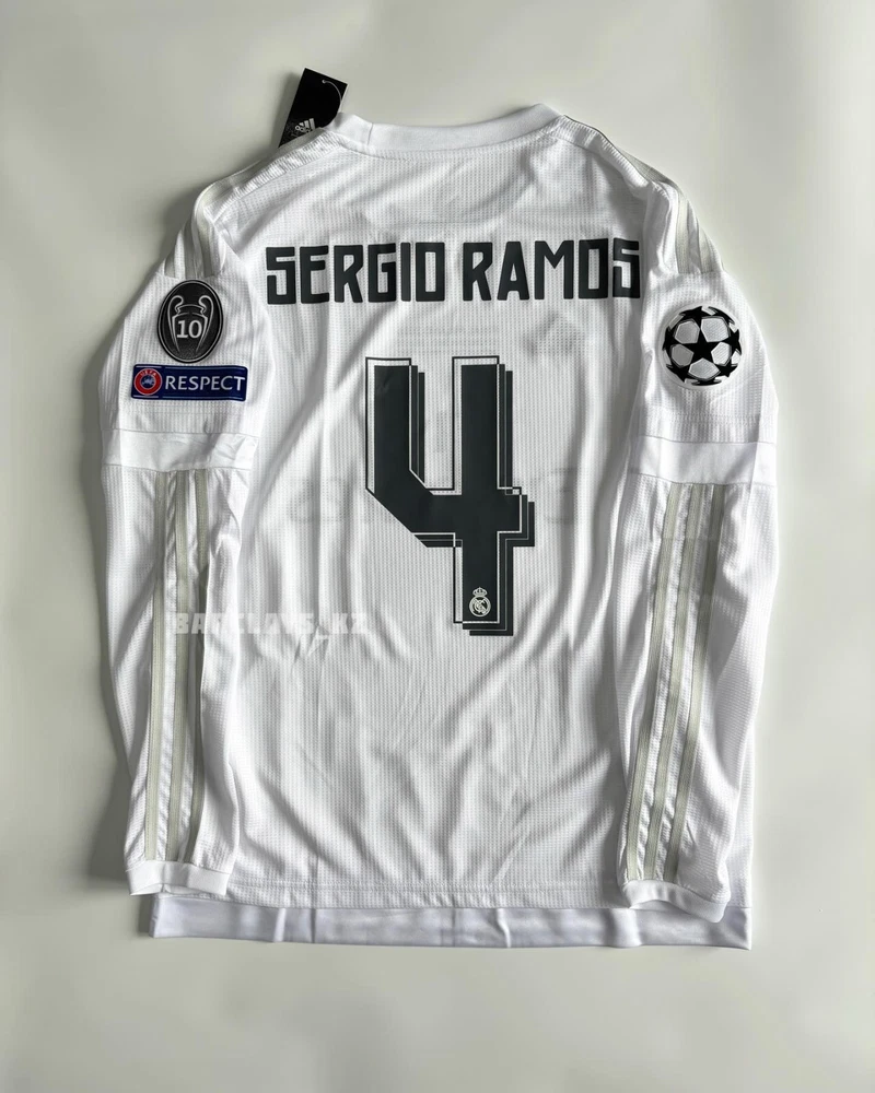 Sergio Ramos Real Madrid 2015/2016 Home White Long Sleeve Soccer Jersey