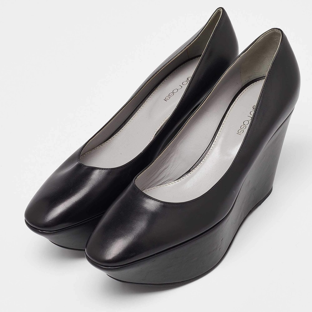 Our eBay Store About Us Contact Us Add to Favorite Sellers Sergio Rossi Black Leather Wedge Platform Pumps Size 38 Make a chic style statement with these designer pumps. They showcase sturdy heels and durable soles, perfect for your fashionable outings! Product Details Brand Sergio Rossi Color Black Includes The Luxury Closet Packaging Outsole Length 26 cm Outsole Width 6.5 cm Size 38 Certified by The Luxury Closet This item has gone through a detailed authentication process overseen by our experts. We offer a lifetime guarantee of authenticity on all our items. How We Check The in-house team of experts at The Luxury Closet is highly trained to verify the authenticity and the condition of the luxury products. They ensure that only 100% authentic items are put on sale.The evaluation process is unique with its own mix of assessment criteria and differs according to the category. Each item is evaluated based on the following combination of hallmarks, hardware, stitching, symmetry, material, craftsmanship, stamping, codes, hologram stickers, and packaging. Our authenticators also check if the items have been modified or amended (e.g., aftermarket diamonds, replaced batteries, repaired bags, etc.) International Buyers Import duties, taxes and charges are not included in the item price. These charges are the buyers responsibility. Please check with your country’s customs office to determine what these additional cost will be prior to buying.