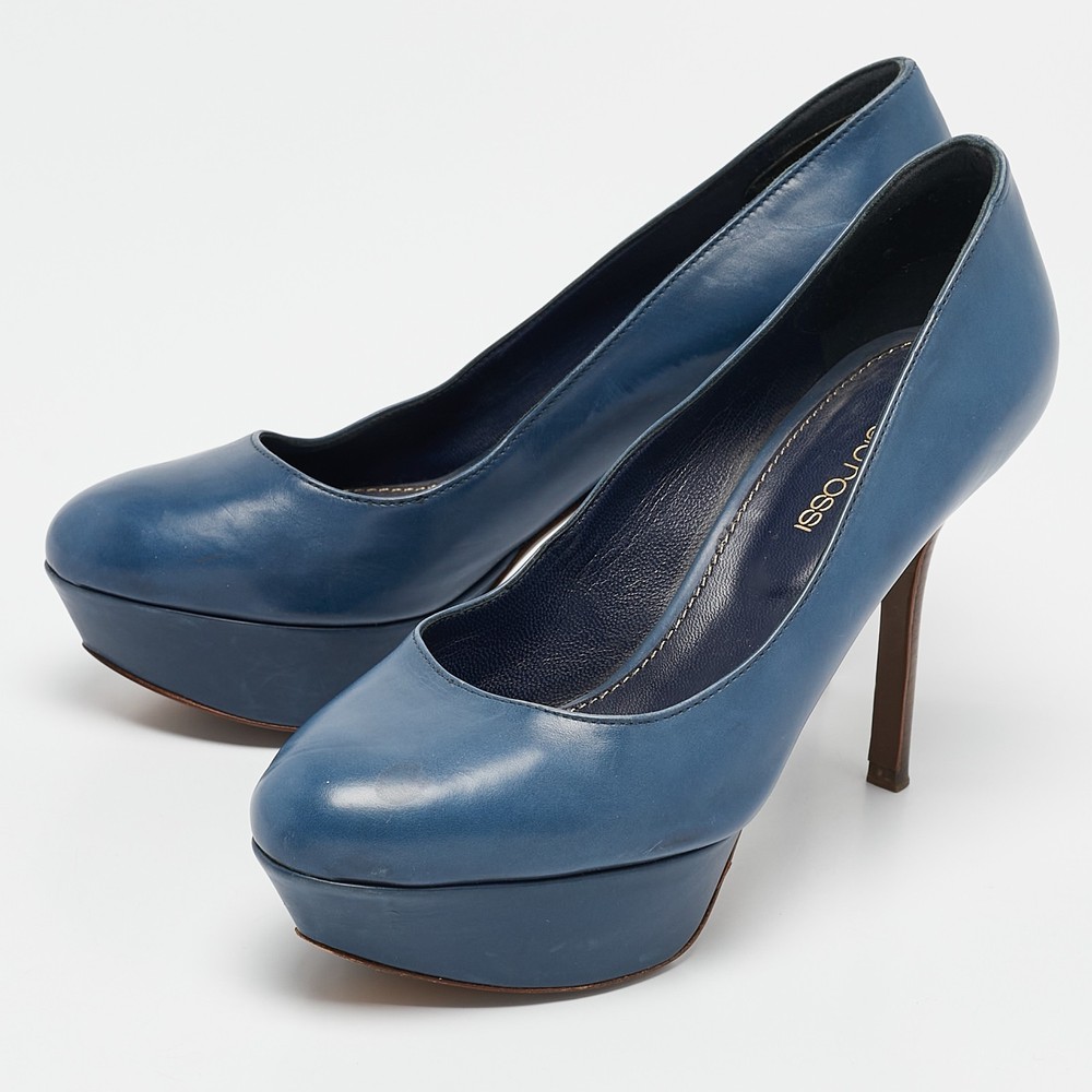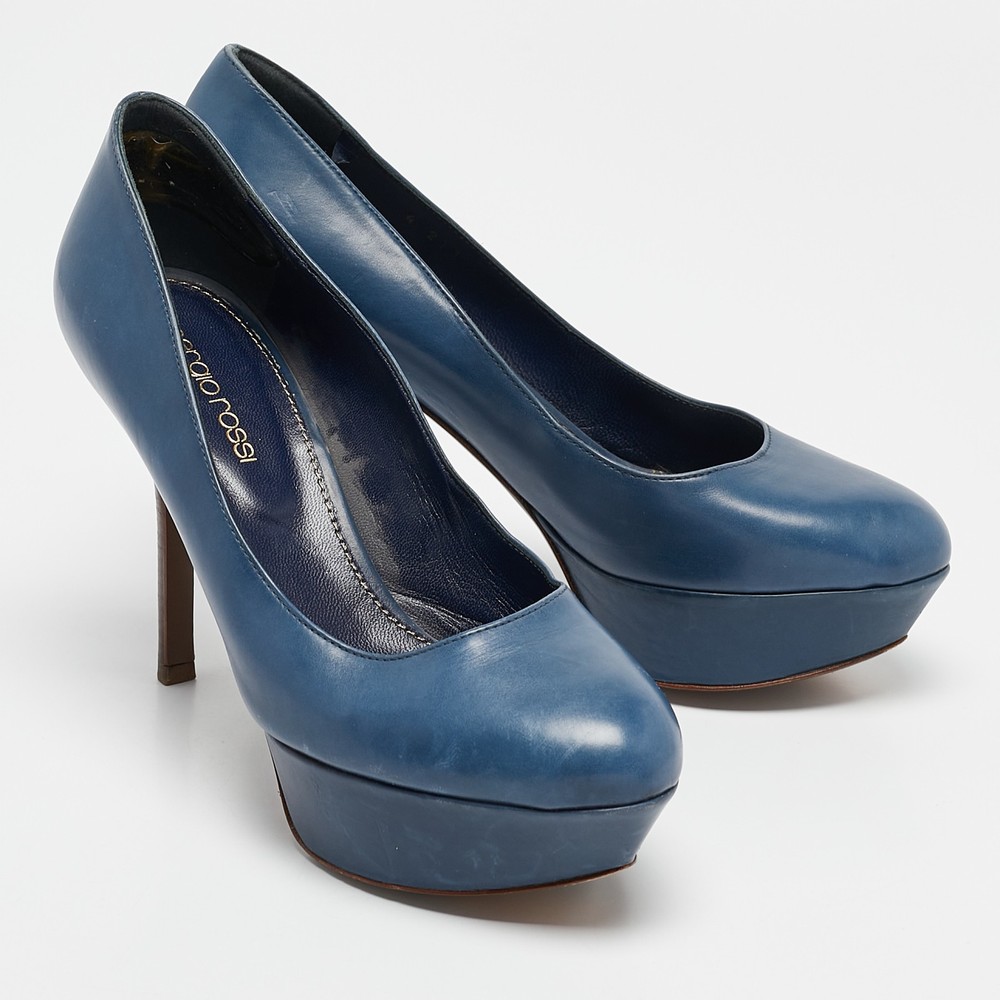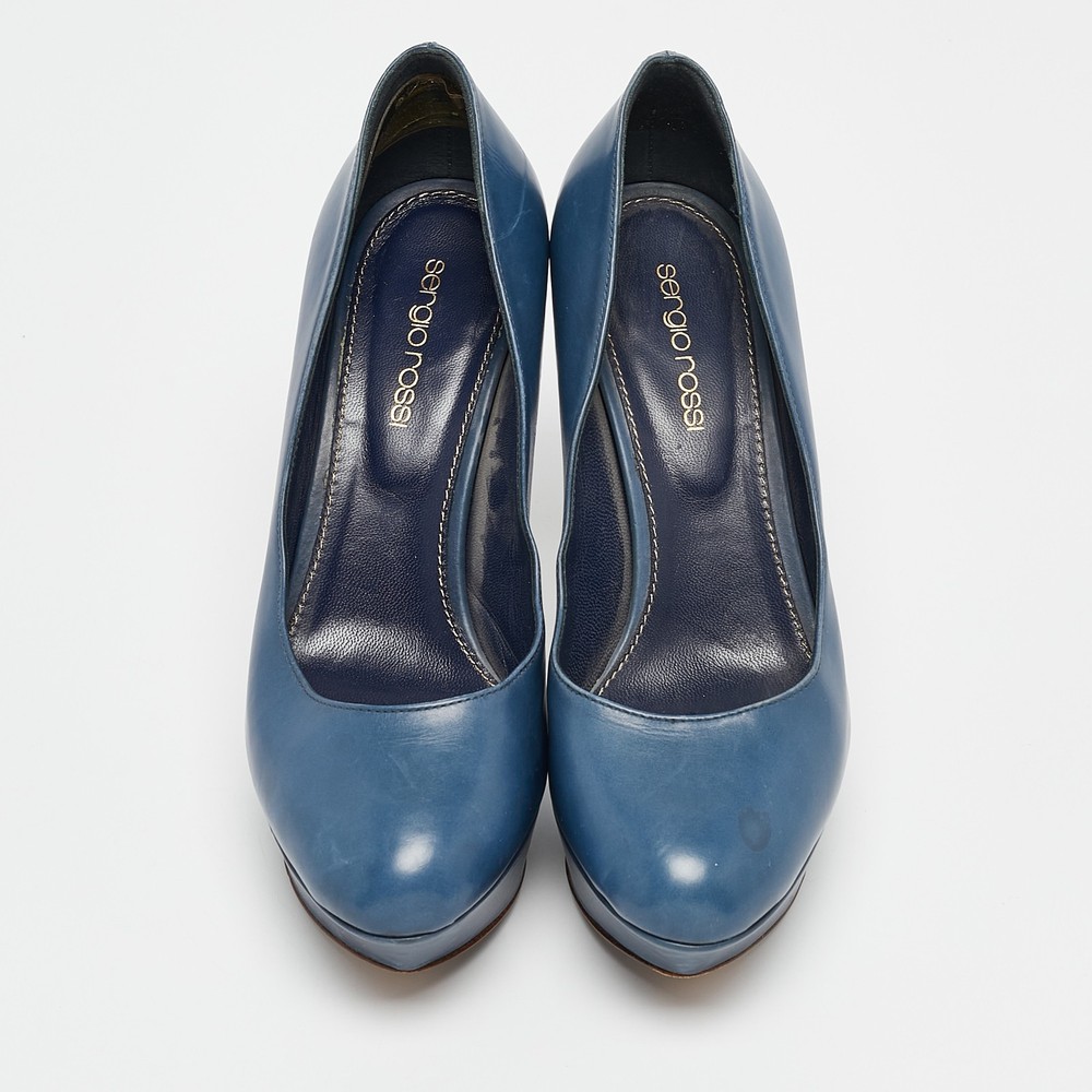 Sergio Rossi Blue Leather Platform Pumps EU 36.5 Womens Heels