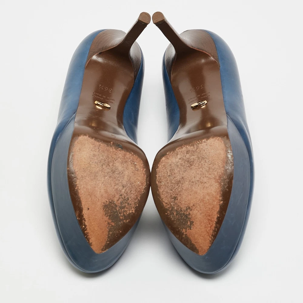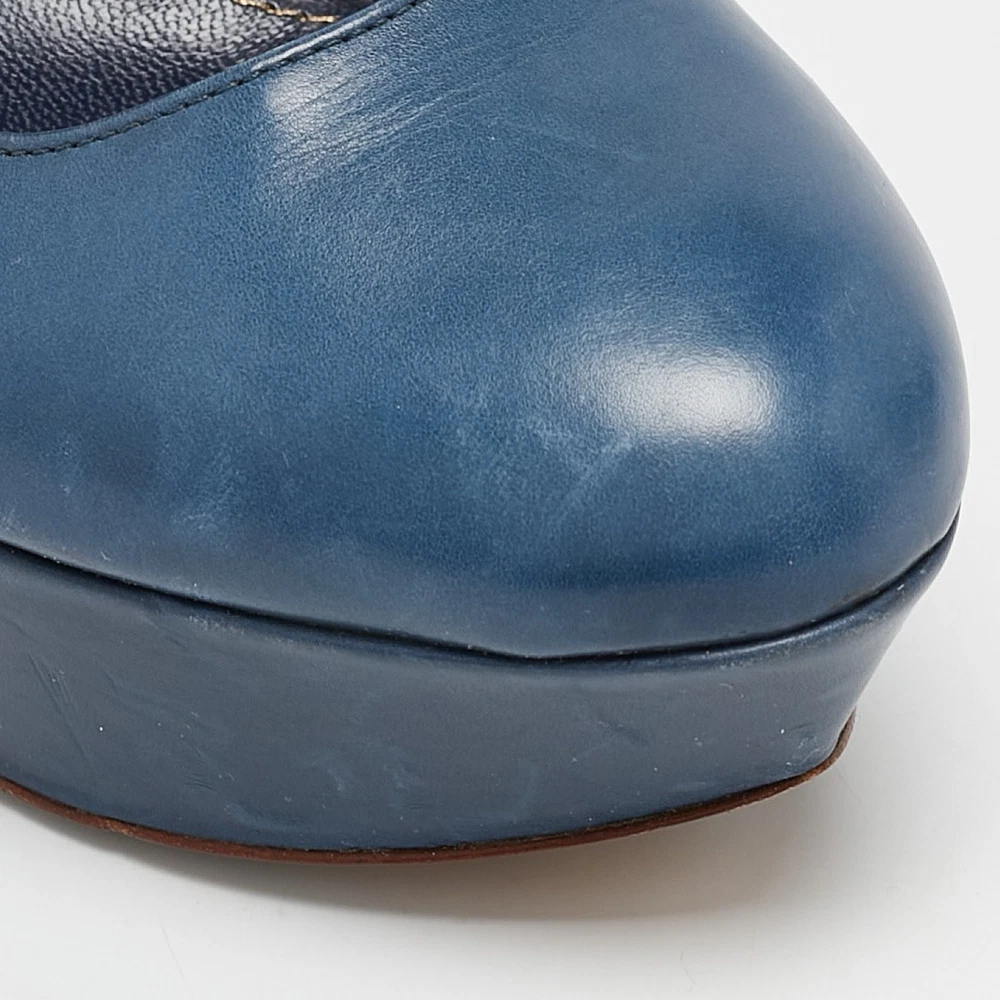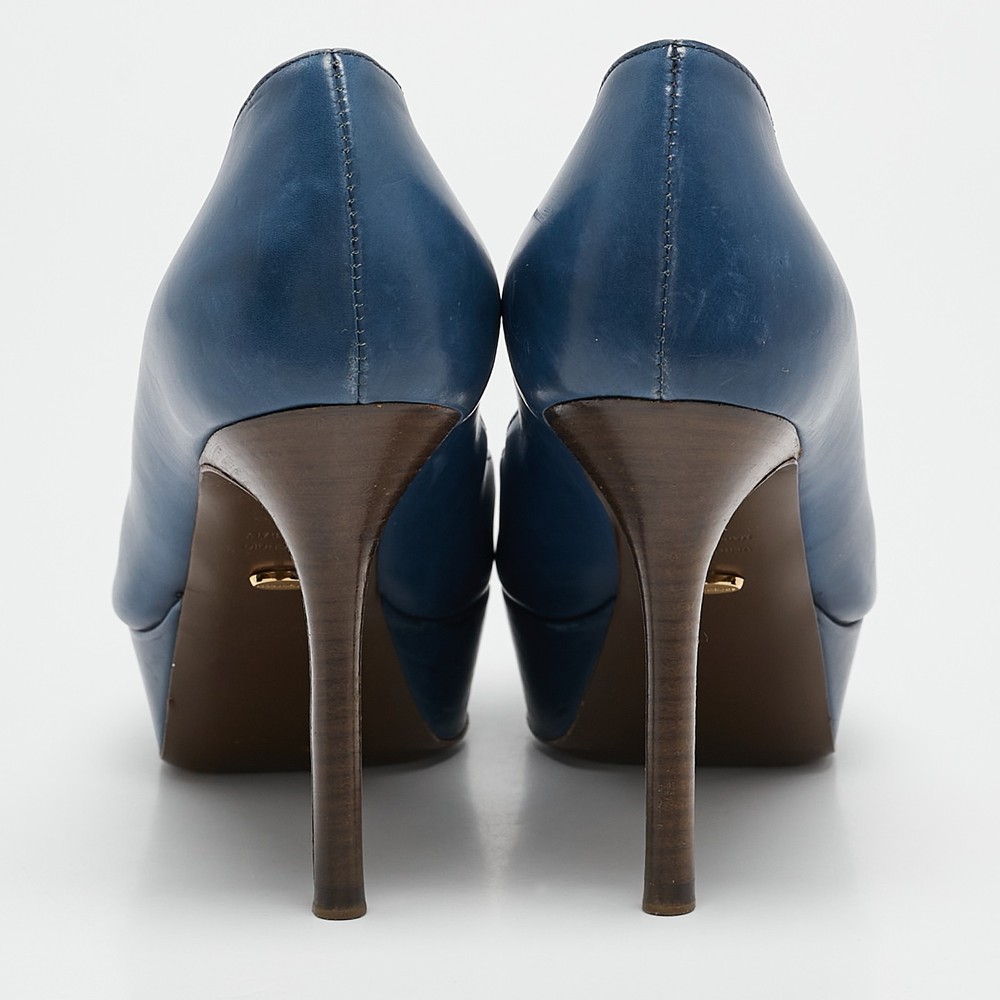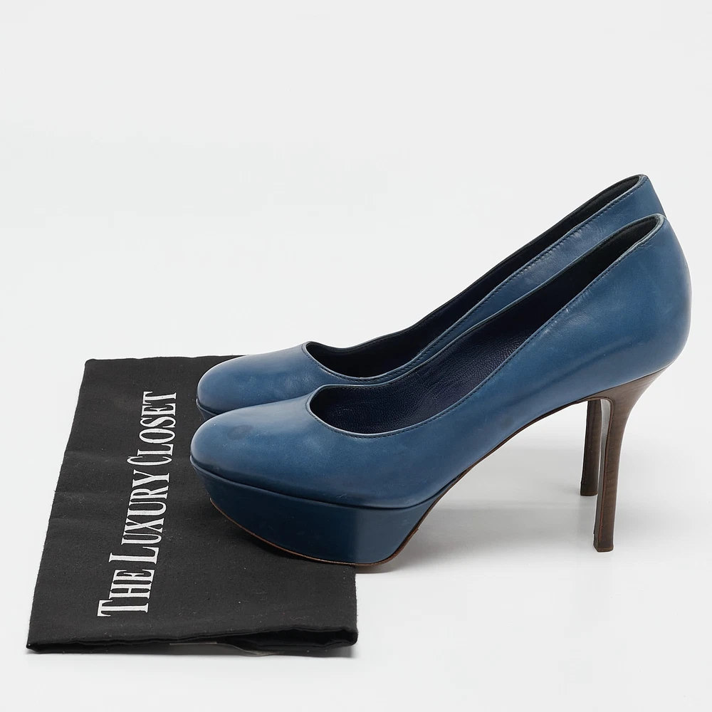 Sergio Rossi Blue Leather Platform Pumps EU 36.5 Womens Heels