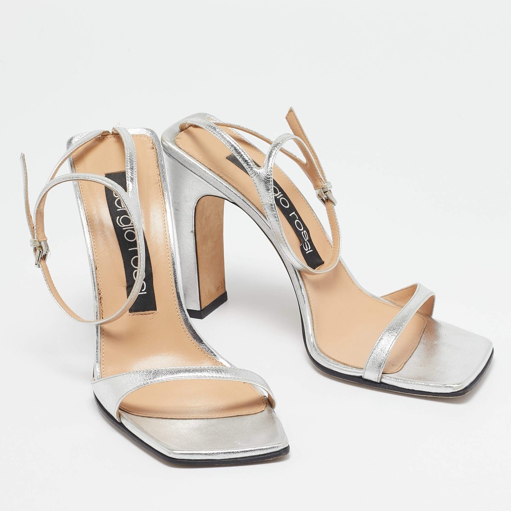 Our eBay Store About Us Contact Us Add to Favorite Sellers Sergio Rossi Silver Leather Ankle Strap Sandals Size 39 Designed for shine and structure, these Sergio Rossi silver leather sandals feature a sleek ankle strap and an open-toe silhouette. A versatile piece that transitions effortlessly from day to night. Product Details Brand Sergio Rossi Color Silver Heel Height 10 cm Material Leather Size 39 Certified by The Luxury Closet This item has gone through a detailed authentication process overseen by our experts. We offer a lifetime guarantee of authenticity on all our items. How We Check The in-house team of experts at The Luxury Closet is highly trained to verify the authenticity and the condition of the luxury products. They ensure that only 100% authentic items are put on sale.The evaluation process is unique with its own mix of assessment criteria and differs according to the category. Each item is evaluated based on the following combination of hallmarks, hardware, stitching, symmetry, material, craftsmanship, stamping, codes, hologram stickers, and packaging. Our authenticators also check if the items have been modified or amended (e.g., aftermarket diamonds, replaced batteries, repaired bags, etc.) International Buyers Import duties, taxes and charges are not included in the item price. These charges are the buyers responsibility. Please check with your country’s customs office to determine what these additional cost will be prior to buying.