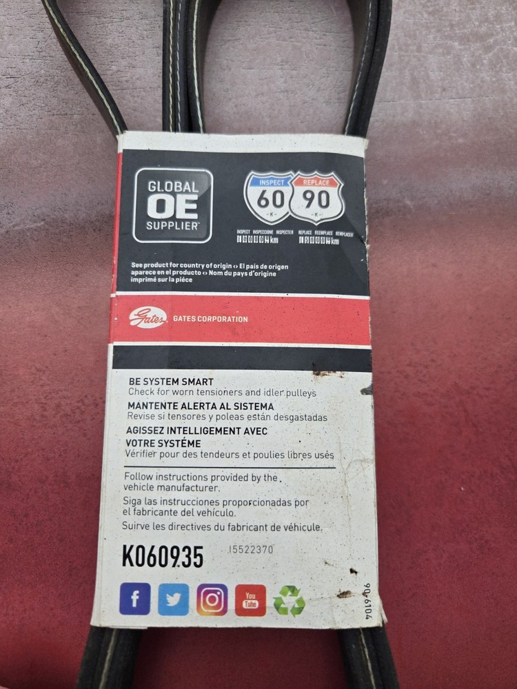 eBay WHI Template Serpentine Belt-Fleetrunner Heavy Duty Micro-V Belt Gates K060935HD SELLER & PAYMENT INFORMATION Seller name quickpickap See our other listings CUSTOMER SUPPORT If you have questions about the product or your order please contact us via eBay Messages for assistance. Thank you. Business Hours 7 am to 12 a.m. EST, MON to SUN. SHIPPING & HANDLING Shipping Service Please refer to shipping section Shipping Cost Please refer to shipping section Order Processing Time 1 business day PART DETAILS Brand Gates Part Number K060935HD Item Description Fleetrunner Heavy Duty Micro-V Belt Quantity Needed 1 ITEM SPECIFICS Description FleetRunner Heavy-Duty Micro-V belts are engineered to save your fleet money and reduce downtime. Patented EPDM construction with distinct green overcord is built specifically for more durability, superior flexibility, stability and longer life on heavy-duty drives. Haul more. Drive longer. OE/OEM Part Number 4593668AA,4861850AB,4861850AA,4861850AC,4861850AD,139978792,0139978792,24506984,12576748,D9ZE8620AA,JK6942AA,JK6942AB,E0ZE8620AA,F2TA8620UA,F2TA8620VA,F2TZ8620E,F0TA8620FA,F0TA8620HA,F4TA8620AJA,JK6940,JK6940A,JK6940B,JK6940F,JK6942,JK6942A,JK6942B,JK6943AA,JK6940B,JK6940F,1R3E8260BA,1R3E8620DA,1R3Z8620BA,1R3Z8620DA,JK6940F,E8TA8620BA,E8TA8620LA,E8TZ8620C,E8TZ8620D,E8TZ8620E,F77E8620PB,F77Z8620A,F77Z8620PA,F77Z8620PB,F77Z8620A,XR3Z8620HA,XR838620BA,10105245,12551136,12559616,12626222,12569436,12576748,12590622,12594450,19355278,24505380,GX538620AA,GX738620DA,T2H3354,T2R18722,XR830447,LR091610,4593668AA,204024,204679,204803,204865,935K6,E8TA8620LA,E8TZ8620C,E8TZ8620D,E8TZ8620E,10105245,24505380,24506984,F4TA8620AJA,F77E8620PB,F77Z8620PA,F77Z8620PB,205622,F0TA8620FA,F0TA8620HA,F2TA8620UA,F2TA8620VA,F2TZ8620E,4861850AB,12551136,12559616,12569436,12576748,1R3E8260BA,1R3E8620DA,1R3Z8620BA,R528332,E8TA8620BA,D9ZE8620AA,E0ZE8620AA,12590622,12594450,12626222,JK6940B,JK6940F,203508,R515222,139978792,W0002987,XR838620BA,XR830447,202959,6PK2370,6PK2372,6PK2375,4593668AA,4861850AB,4861850AA,4861850AB,4861850AC,4861850AD,W0002987, Type Serpentine Belt See Item Specifics section for additional specifications about this part. Vehicle Fitment Summary To confirm that this part fits your vehicle, enter your vehicle's Year, Make, Model, Trim and Engine in the Compatibility Table . Also review the notes section in the compatibility chart for additional specifications about this part. This part generally fits Cadillac,Chevrolet,Ford,GMC,Hummer,Jaguar,Land Rover,Mercedes-Benz,Mercury,Peterbilt,Saab,Workhorse Custo m Chassis vehicles and includes models such as 387,9-7x,Avalanche,Bronco,C1500,C2500,C3500HD,Canyon,Colorado,Escalade ESV,Escalade EXT,Escalade,Explorer,Express 1500,Express 2500,Express 3500,Express 4500,Express Cargo,Express Pasajeros,F-150,F-250,F-350,F-Pac e,H2,H3,H3T,K1500,K2500,LCF 3500,LCF 4500,ML430,ML500,ML55 AMG,Mountaineer,P42,Range Rover Velar,Savana 1500,Savana 2500,Savana 35 00,Savana 4500,Sierra 1500,Sierra 2500 HD,Sierra 3500 HD,Sierra,Silverado 1500,Silverado 2500 HD,Silverado 2500,Silverado 3500 HD, Silverado 3500,Suburban 1500,Suburban 2500,Suburban,Tahoe,Trailblazer,Yukon XL 1500,Yukon XL 2500,Yukon with the trims of 75 Anive rsario Diamond Edition Sport Utility 4-Door,Adventure Crew Cab Pickup 4-Door,Adventure Sport Utility 4-Door,Aero Sport Utility 4-D oor,Alpha Crew Cab Pickup 4-Door,Alpha Sport Utility 4-Door,Ambulancia Cutaway Van 2-Door,Base Cab & Chassis - Conventional 2- Door,Base Cab & Chassis - Crew Cab 4-Door,Base Cab & Chassis 2-Door,Base Crew Cab Pickup 4-Door,Base Cutaway 2-Door,Base C utaway Van 2-Door,Base Extended Cab Pickup 2-Door,Base Extended Cab Pickup 3-Door,Base Extended Cab Pickup 4-Door,Base Extended Ca rgo Van 3-Door,Base Extended Passenger Van 3-Door,Base Extended Passenger Van 4-Door,Base Sport Utility 4-Door,Base Standard Cab P ickup 2-Door,Base Standard Cargo Van 3-Door,Base Standard Cargo Van 4-Door,Base Standard Passenger Van 3-Door,Base Standard Passen ger Van 4-Door,Base Step Van - Cab Forward,Base Step Van - Stripped Chassis,Base Straight Truck - Low Crew Cab,Base Straight Truck - Low Tilt,Base Stripped Chassis - Cab Forward,Base Stripped Chassis - Incomplete,Base Tractor Truck - Medium Conventional,Black Diamond LS Crew Cab Pickup 4-Door,Black Diamond LT Crew Cab Pickup 4-Door,Black Diamond LTZ Crew Cab Pickup 4-Door,Championship Se ries Sport Utility 4-Door,Cheyenne Cab & Chassis 2-Door,Cheyenne Extended Cab Pickup 2-Door,Cheyenne Extended Cab Pickup 3-Doo r,Cheyenne Standard Cab Pickup 2-Door,Custom Cab & Chassis 2-Door,Custom Crew Cab Pickup 4-Door,Custom Extended Cab Pickup 2-D oor,Custom Sport Utility 2-Door,Custom Standard Cab Pickup 2-Door,Denali Crew Cab Pickup 4-Door,Denali Sport Utility 4-Door,Eddie Bauer Sport Utility 2-Door,Eddie Bauer Sport Utility 4-Door,Limited Sport Utility 4-Door,LS Crew Cab Pickup 4-Door,LS Extended Cab Pickup 4-Door,LS Extended Passenger Van 3-Door,LS Sport Utility 4-Door,LS Standard Cab Pickup 2-Door,LS Standard Passenger Van 3- Door,LS Standard Passenger Van 4-Door,LT Cab & Chassis 2-Door,LT Cab & Chassis 4-Door,LT Crew Cab Pickup 4-Door,LT Extende d Cab Pickup 4-Door,LT Extended Passenger Van 3-Door,LT Sport Utility 4-Door,LT Standard Cab Pickup 2-Door,LT Standard Passenger V an 3-Door,LT Standard Passenger Van 4-Door,LTZ Crew Cab Pickup 4-Door,LTZ Extended Cab Pickup 4-Door,LTZ Sport Utility 4-Door,LTZ Standard Cab Pickup 2-Door,Lujo Sport Utility 4-Door,Luxury Crew Cab Pickup 4-Door,Luxury Sport Utility 4-Door,Platinum Sport Util ity 4-Door,Police Sport Utility 4-Door,PPV Sport Utility 4-Door,Premium Crew Cab Pickup 4-Door,Premium Sport Utility 4-Door,Ranger Standard Cab Pickup 2-Door,Sierra SL Cab & Chassis 2-Door,Sierra SL Extended Cab Pickup 2-Door,Sierra SL Extended Cab Pickup 3-Door,Sierra SL Standard Cab Pickup 2-Door,Sierra SLE Cab & Chassis 2-Door,Sierra SLE Extended Cab Pickup 2-Door,Sierra SLE E xtended Cab Pickup 3-Door,Sierra SLE Standard Cab Pickup 2-Door,