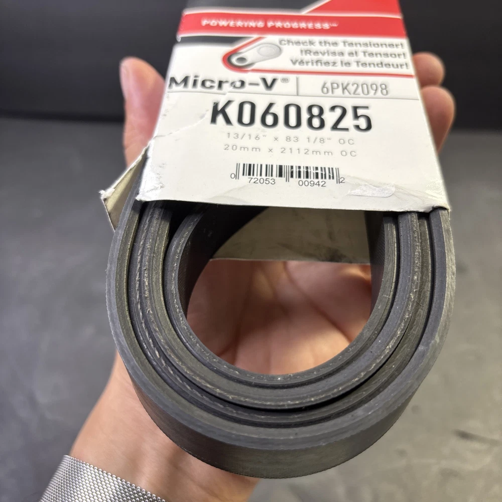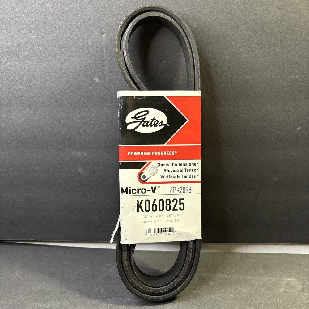 The Serpentine Belt-Premium OE Micro-V Belt by Gates is a high-quality replacement part for car and truck engines. This V-belt, specifically designed by Gates with the manufacturer part number K060825, ensures optimal performance and durability. Made by a trusted brand known for its reliability, this belt is a crucial component in ensuring the proper functioning of your vehicle's engine system.