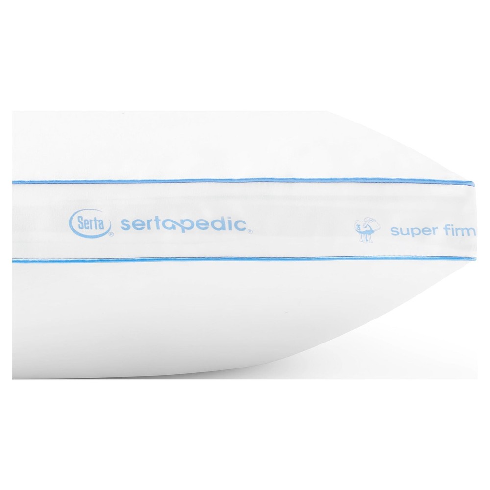 No more counting sheep with this Sertapedic Extra Firm Pillow! These Sertapedic Extra Firm Pillows offer a comfortable way to get a good night of sleep with plenty of support. The cover is made of a soft and cozy 300 thread count cotton and polyester blend. These pillows include a 2-inch gusset to maximum comfort and support. This Extra firm support is ideal for back or side sleeping positions. The fill is hypoallergenic, made from 100 percent polyester fill so you can breathe easy. Available in two sizes to fit any bed: Standard/Queen and King. These pillows are machine washable and dryable for easy care. Serta has been pioneering comfortable sleep since 1931. Every Sertapedic pillow is designed to provide exceptional comfort. With a broad range of support levels and technology to choose from in the Sertapedic line, there are options to fit every sleep position. Not just sorta comfortable. Serta comfortable. Sertapedic Extra Firm Pillow 2 inch gusset provides super firm support and comfort Hypoallergenic 100% polyester fill Soft 300 thread count 55% cotton; 45% polyester shell Extra Firm support is ideal for back and side sleepers Available in singles or 2 packs Standard/Queen size: 30" x 20" King size: 36" x 20" Can be machine washed and dried for easy care