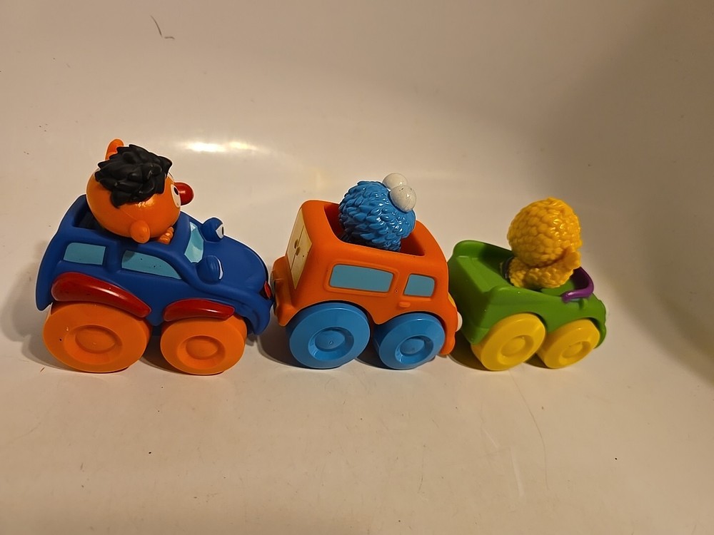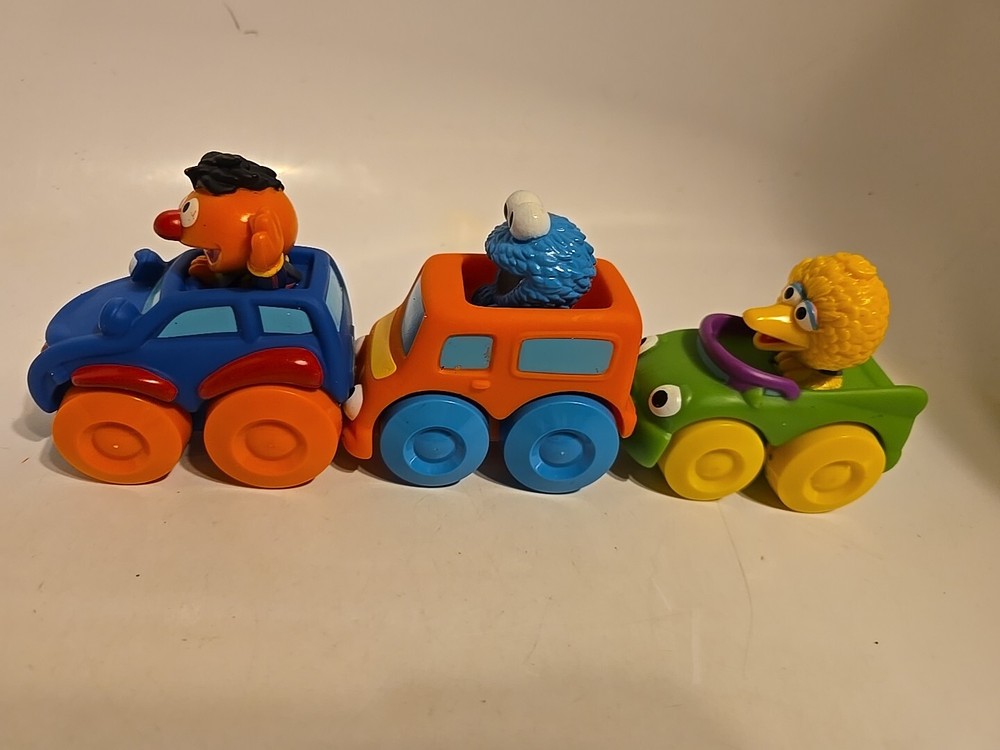 Sesame Street Plastic Cookie Monster, Ernie and Big Bird Cars 2011 Hasbro. SEE PICTURES AS PART OF DESCRIPTION. WHAT YOU SEE IS WHAT YOU WILL RECEIVE.