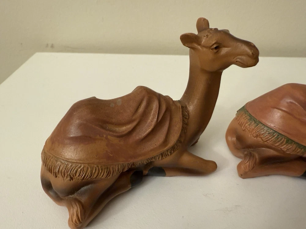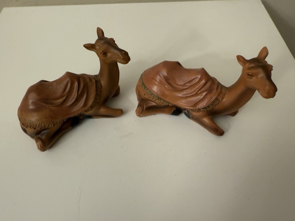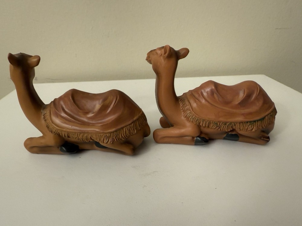 Set 2 Nativity Camel Laying Down Brown fringe Blanket Plastic Resin Replacement