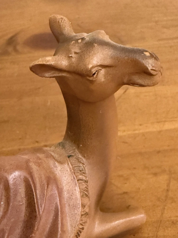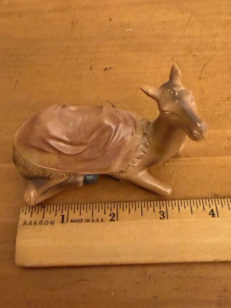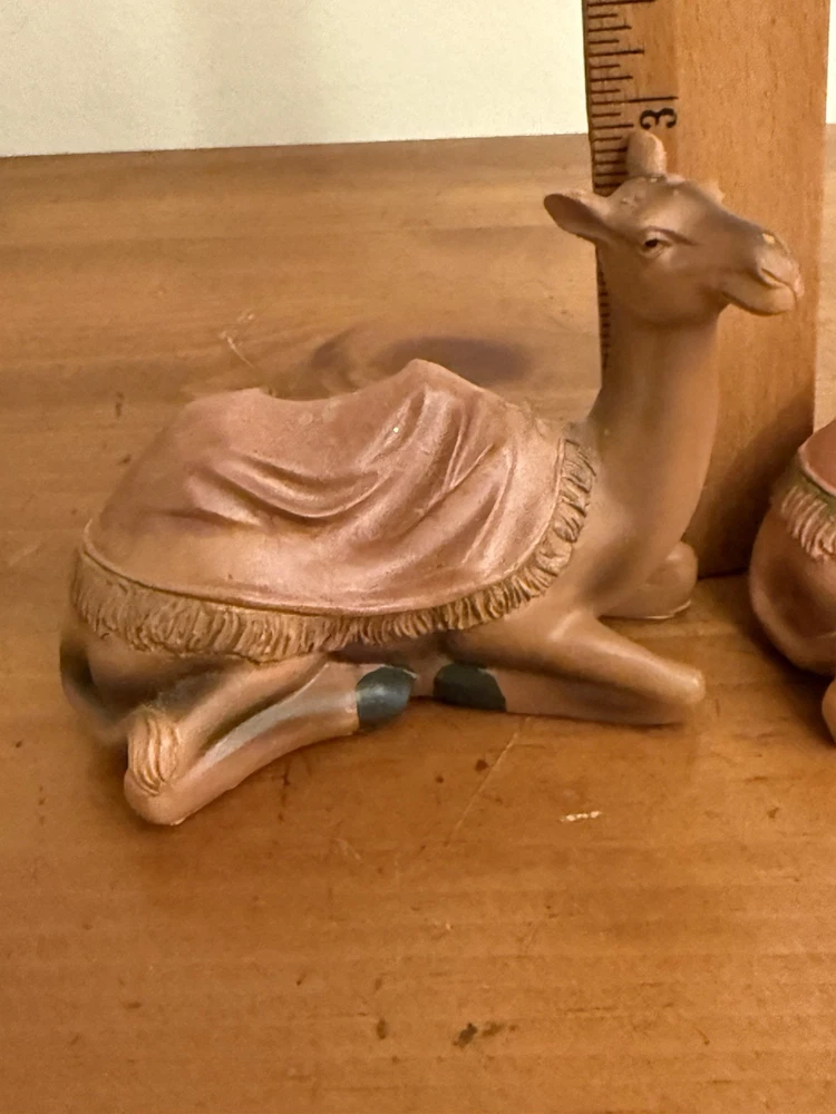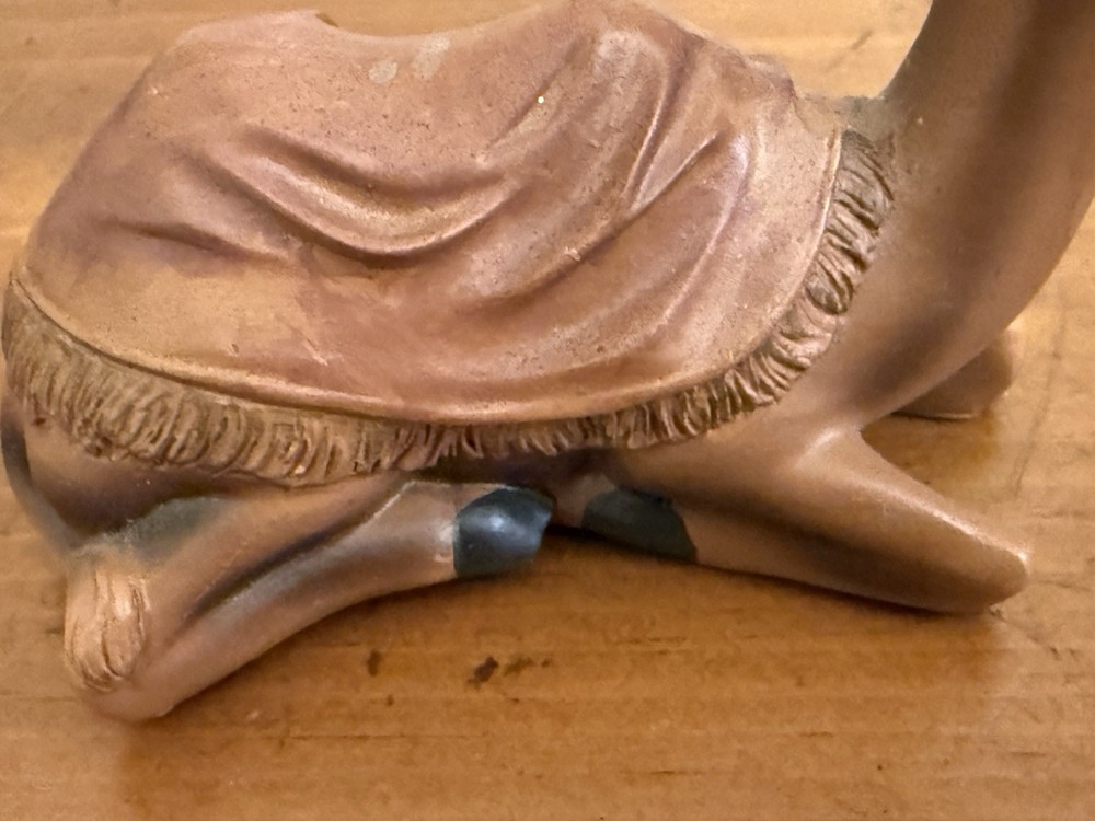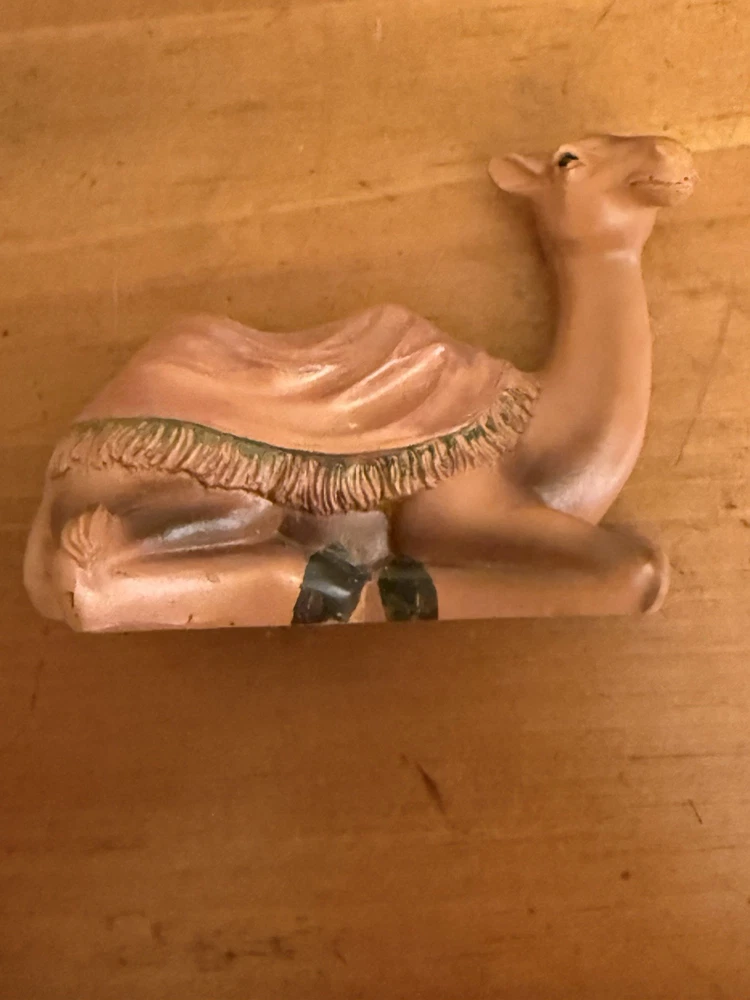 Subject: Camel Collection: camel Country of Origin: Unknown Time Period Manufactured: unknown Number of Items: 1 Shape: camel Size: see description Type: camel Occasion: Christmas Color: Brown Features: Reusable, Rustic Design Theme: Religious Original/Licensed Reproduction: Original Item Height: 3 in Franchise: unknown Item Width: 2 in Brand: Unbranded Material: molded plastic Item Length: 4 in MPN: n/a