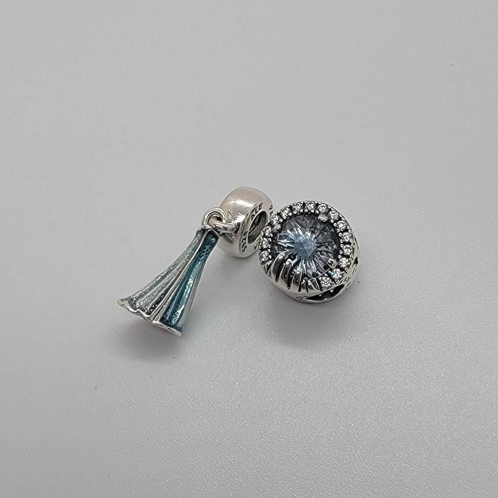 Set 2 New Pandora Authentic Disney Elsa's Dress Dangle and Frozen Crystal Charms