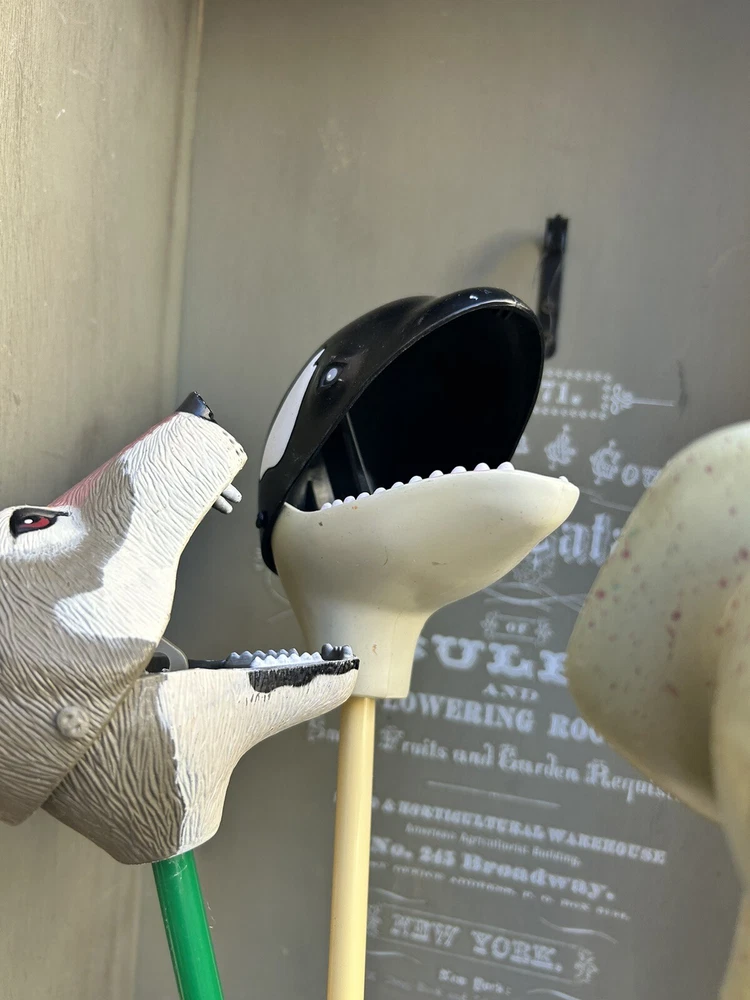 This set of three stuffed animals is a must-have for any animal lover! The collection includes a killer whale, elephant, and wolf, each with a vibrant multicolor design. These toys were made by K & M International in 2014 and are suitable for children aged 3-7 years old. The animals are medium-sized, 18 inches, and are in excellent condition. They are perfect for imaginative play or as a decorative addition to a child's room. The toys were manufactured in China and have not been modified in any way. Add this rare SeaWorld grabber toy set to your collection today! LC-44