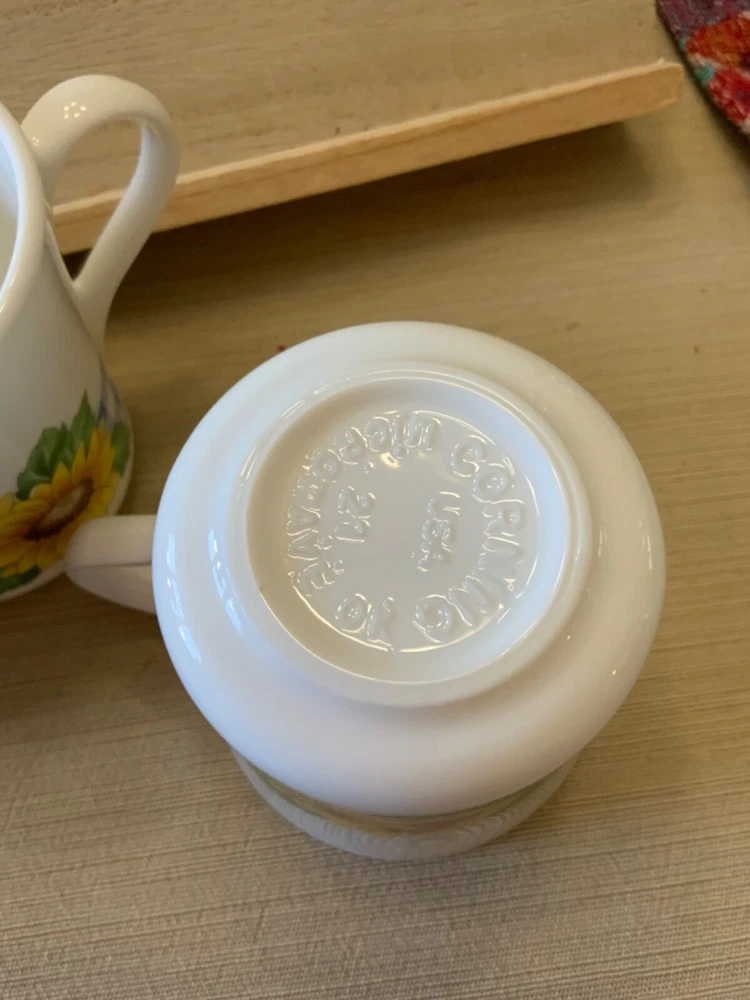 Item Height:3-3/8"Object Type:MugBrand:CorningWareFeatures:Microwave SafeShape:RoundNumber of Items in Set:Five-PieceCountry/Region of Manufacture:United StatesBackstamp:ImpressedVintage:YesTime Period Manufactured:1990-1999Type:MugHandmade:NoProduct Line:CorellePattern:Sunsations SunflowerOriginal/Reproduction:Vintage OriginalTheme:SunflowerColor:Multi-ColorOccasion:All OccasionsMaterial:Glass