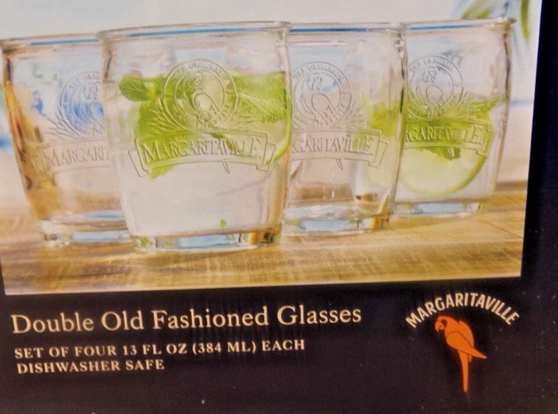 This set of four Margaritaville double old fashion glasses is perfect for any summer occasion. Each glass has a capacity of 13 FL OZ and stands at 4 inches tall with a width of 3.5 inches. The glasses are made of clear, durable glass material and feature break/chip resistant and decorated features. These glasses are dishwasher safe and perfect for adults. The set includes four double old fashion glasses, perfect for serving four drinks at a time. These glasses are a great addition to any home bar or kitchen.