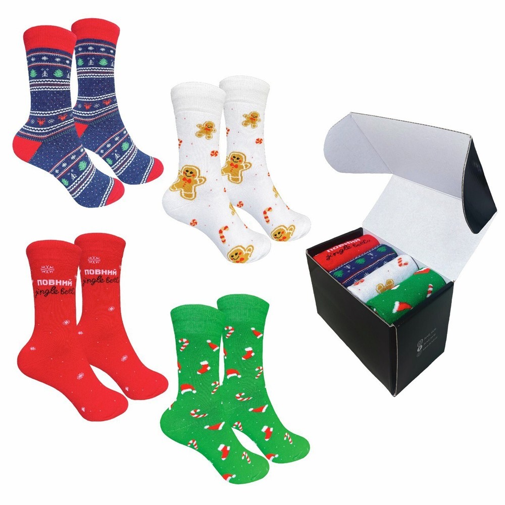 Set of 4 pairs of socks - "Cozy mood" Discover the perfect Christmas gift with our colorful terry socks set! Cozy mood insulated socks set of four pairs of winter socks with various festive designs. Each pair is finished in bright colors with images reminiscent of the festive season, such as gingerbread men and Christmas patterns. They are fully insulated and feature a full-length terry lining for maximum warmth and comfort even on the coldest days. Pamper your family or friends with a warm gift. Also, don't forget about yourself ! Size S: EU - 36-40 US - W 5-9.5 UK - W 3-7.5 Size L: EU - 41-45 US - M 8-11 UK - M 7-10 Material: 85% cotton , 10% elastane , 5% spandex Looking for something unique? Contact us for custom orders to make your gift truly special. Thank you for choosing our shop. We hope our products brings a smile to your face and joy to your heart. Happy shoping!