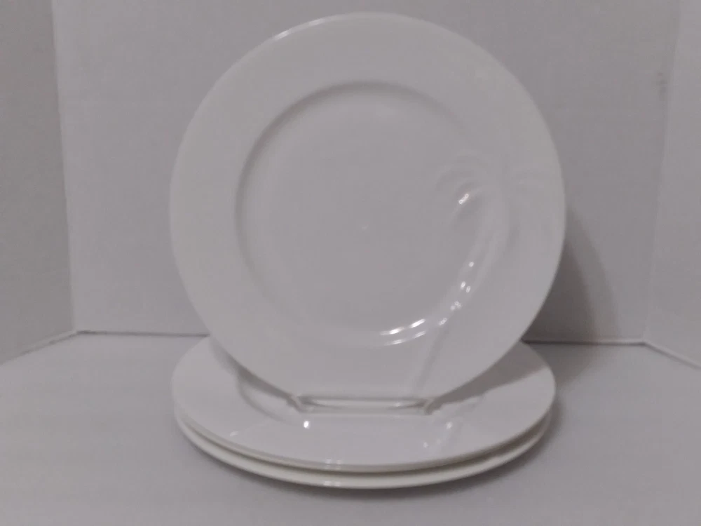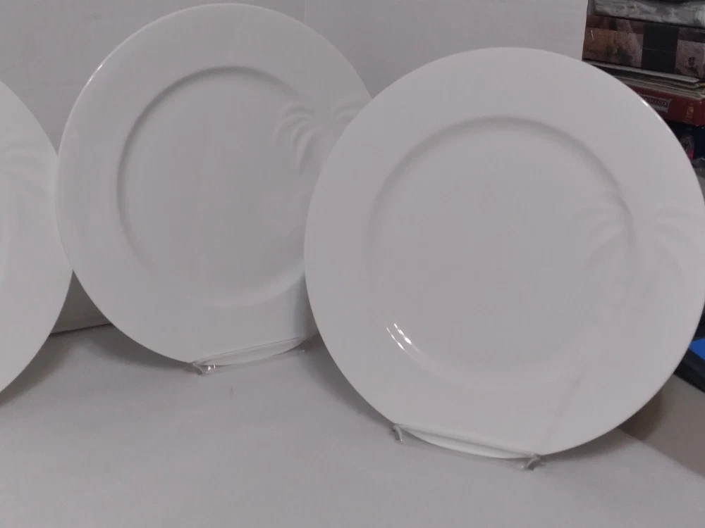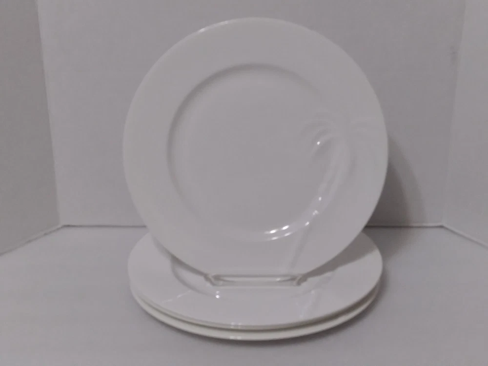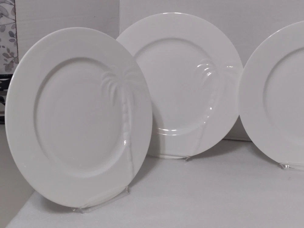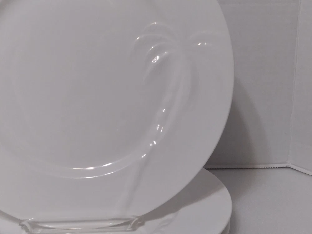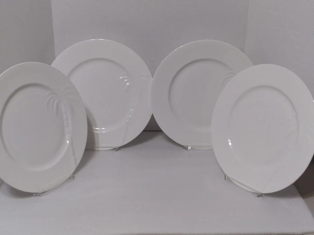 HomeSet (4) Roscher BONE CHINA Solid White PALM TREE PATTERN Dinner Plates 11.25"