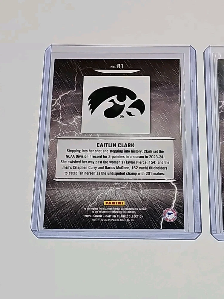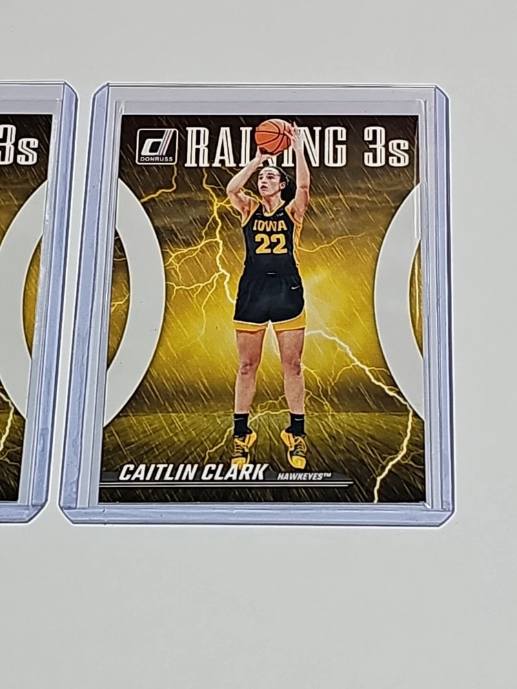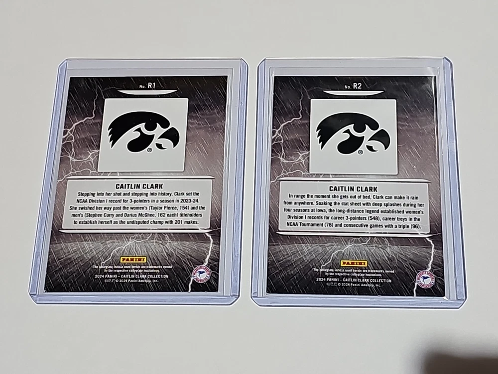 You will receive exactly as pictured, Rare Complete Set Of 2 2024 CAITLIN CLARK Panini Donruss Raining 3's Collection Cards#R1 & R2. All cards are pack fresh, straight to penny sleeves, and then top loaders! Please check out all of my other great deals going on right now. Thanks for looking & good luck!
