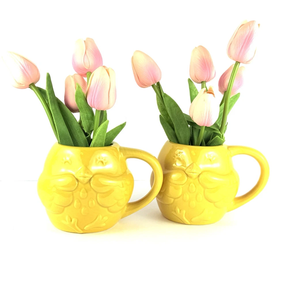 Sweet chick mug set made of stoneware. Microwave and dishwasher safe. I took the tags of the wash them. They are brand new, never used. Let me know what questions you have. Blessings to you!ππππππππ©Άπ