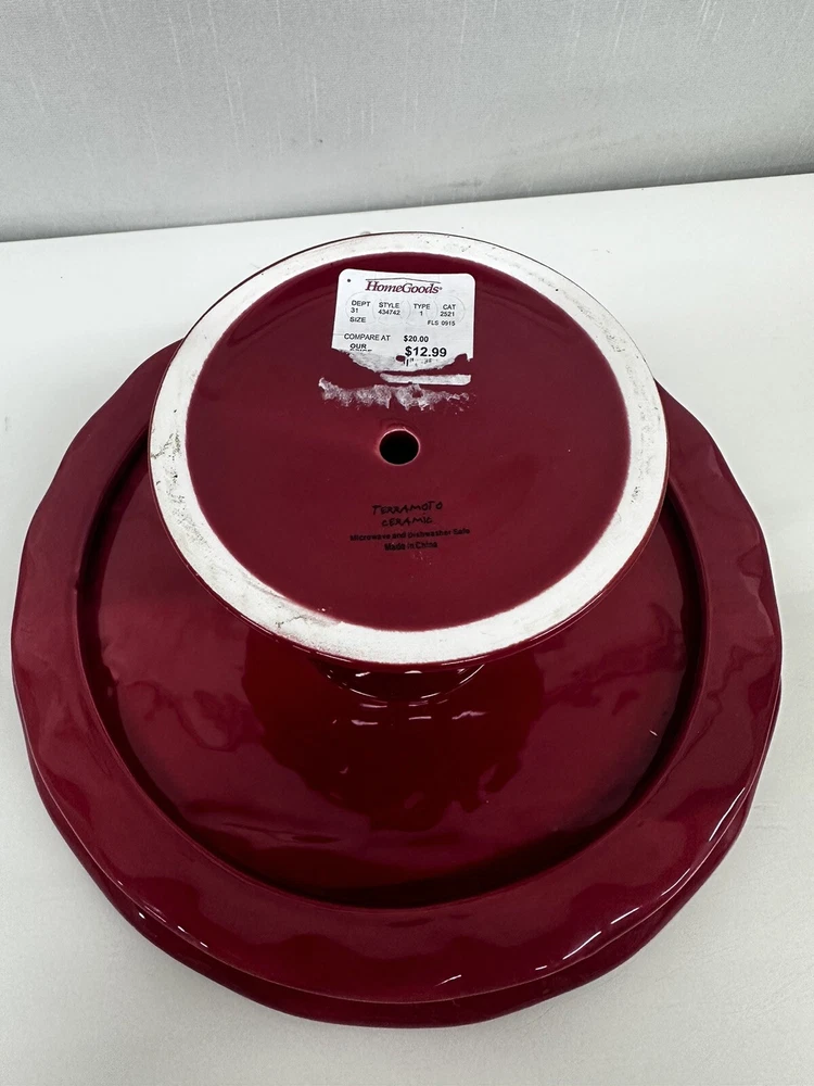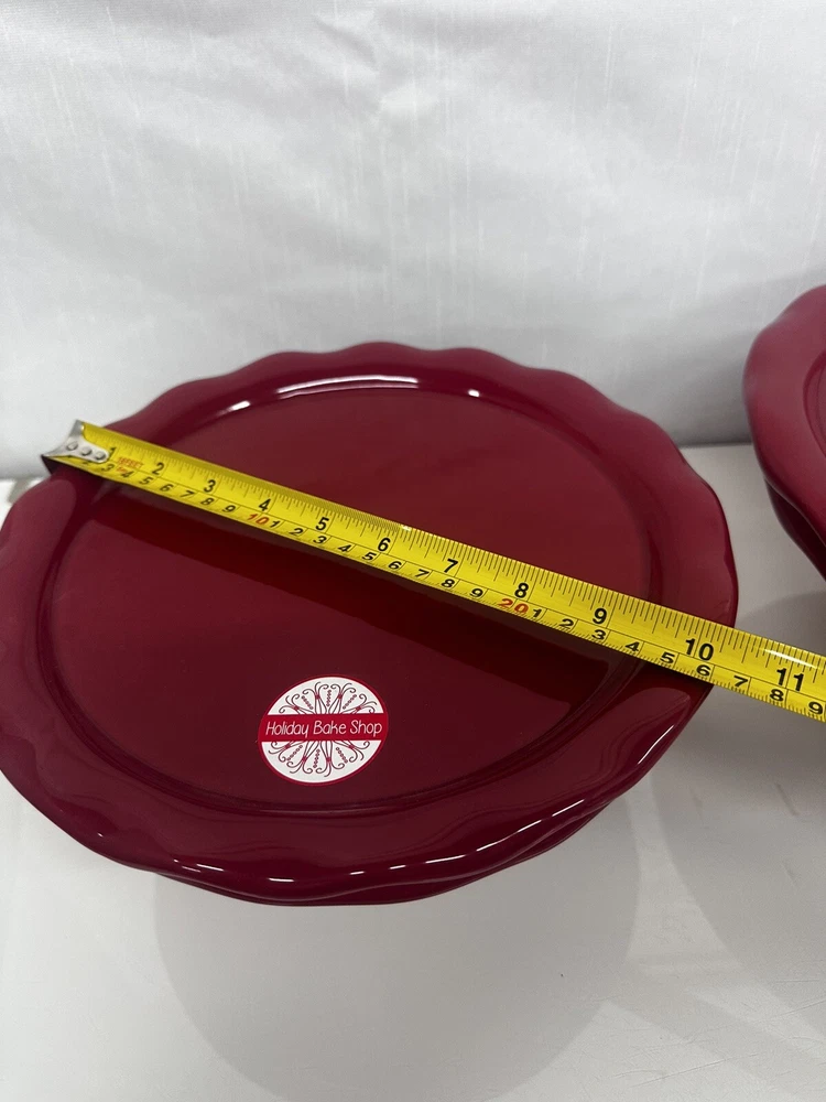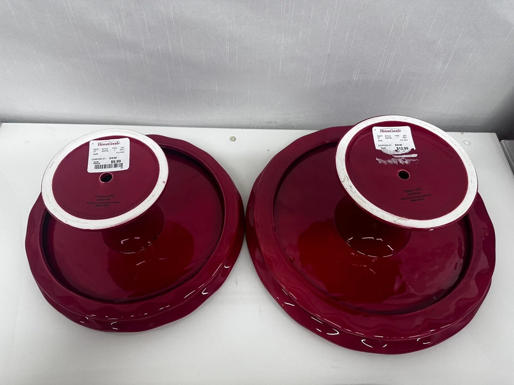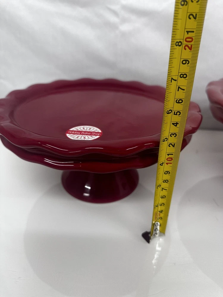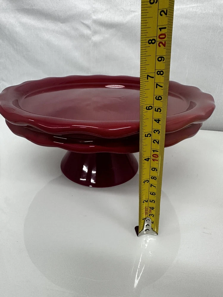 Item Diameter: 10" and 12" Item Height: 5" Shape: Round Number of Items: 2 Color: Red Type: Pedestal Stand Material: Ceramic