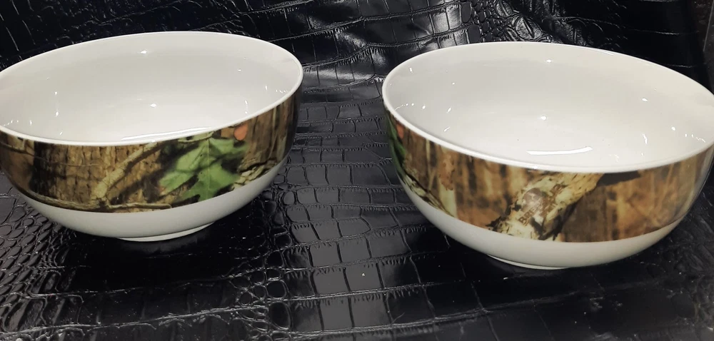 Enjoy your favorite hot cereal or soup in style with this set of two Mossy Oak Break Up Infinity camouflage ceramic bowls. Perfect for all occasions, these round bowls feature a stylish hunting pattern that will make your mealtime more exciting. Each bowl is made with high-quality ceramic material that is durable and long-lasting. The multicolored pattern of these bowls is perfect for adding a touch of nature to your kitchen décor. These bowls are made in China and are the ideal choice for anyone who loves the great outdoors. Whether you're a hunter or just love the look of camouflage, these bowls are the perfect addition to your collection.
