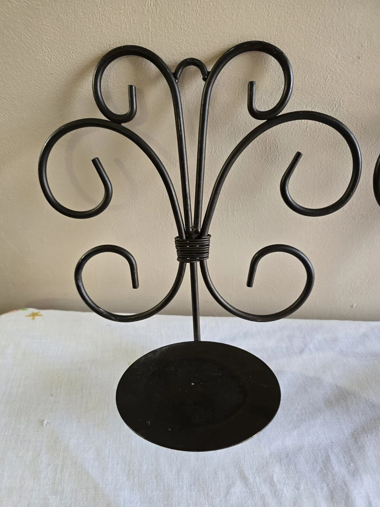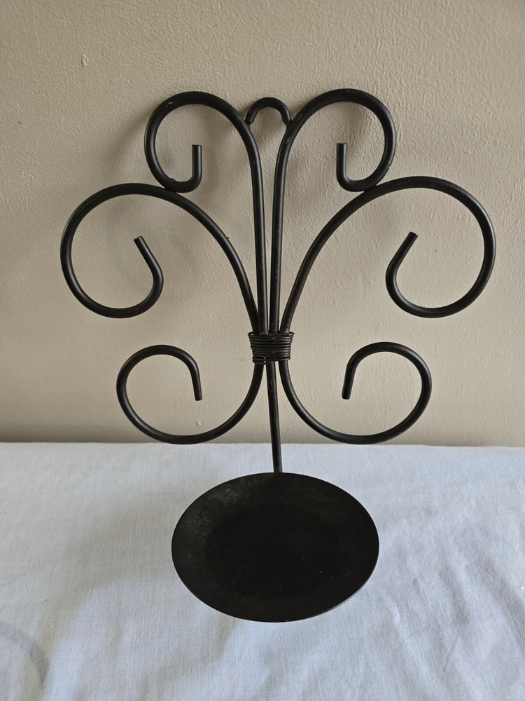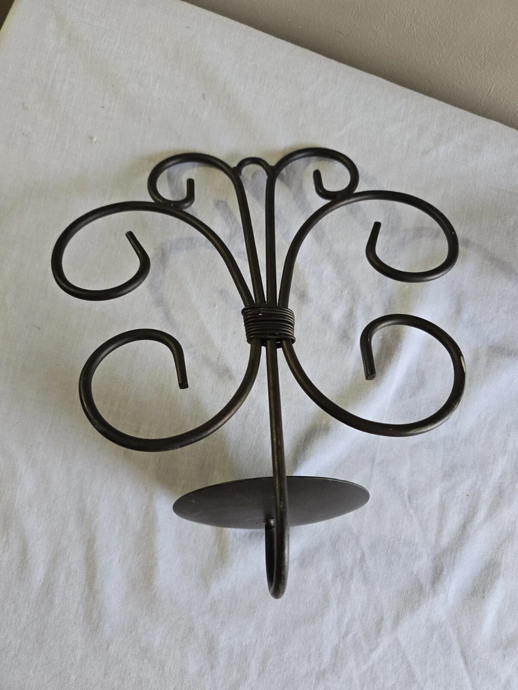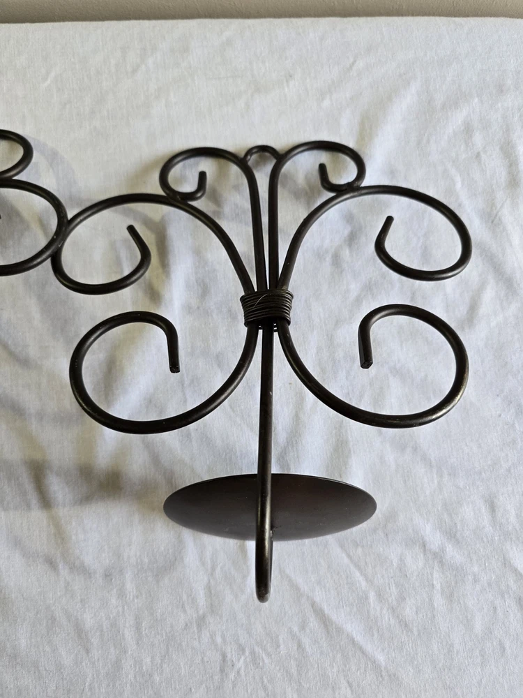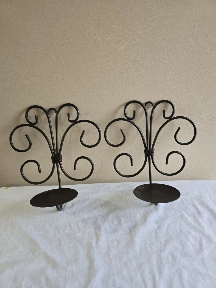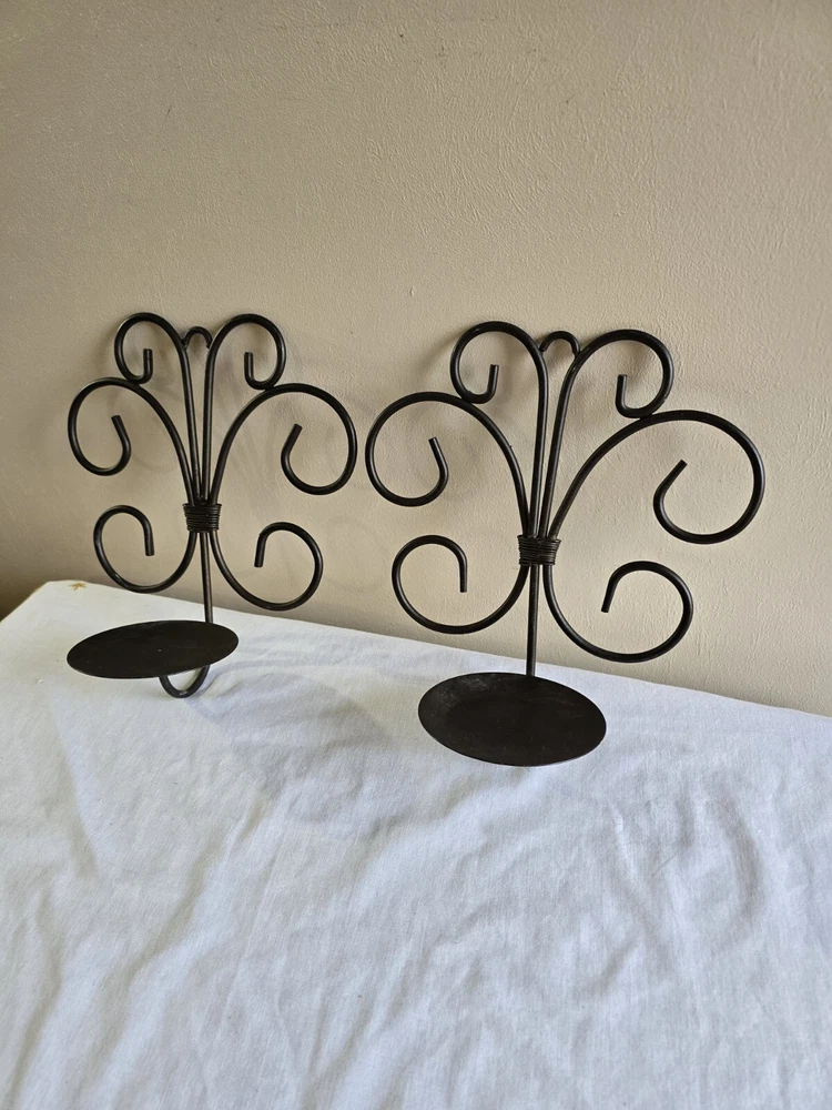 Set Of 2 Rustic Scroll Black Piller Candle Sconces Wall Hanging Holders