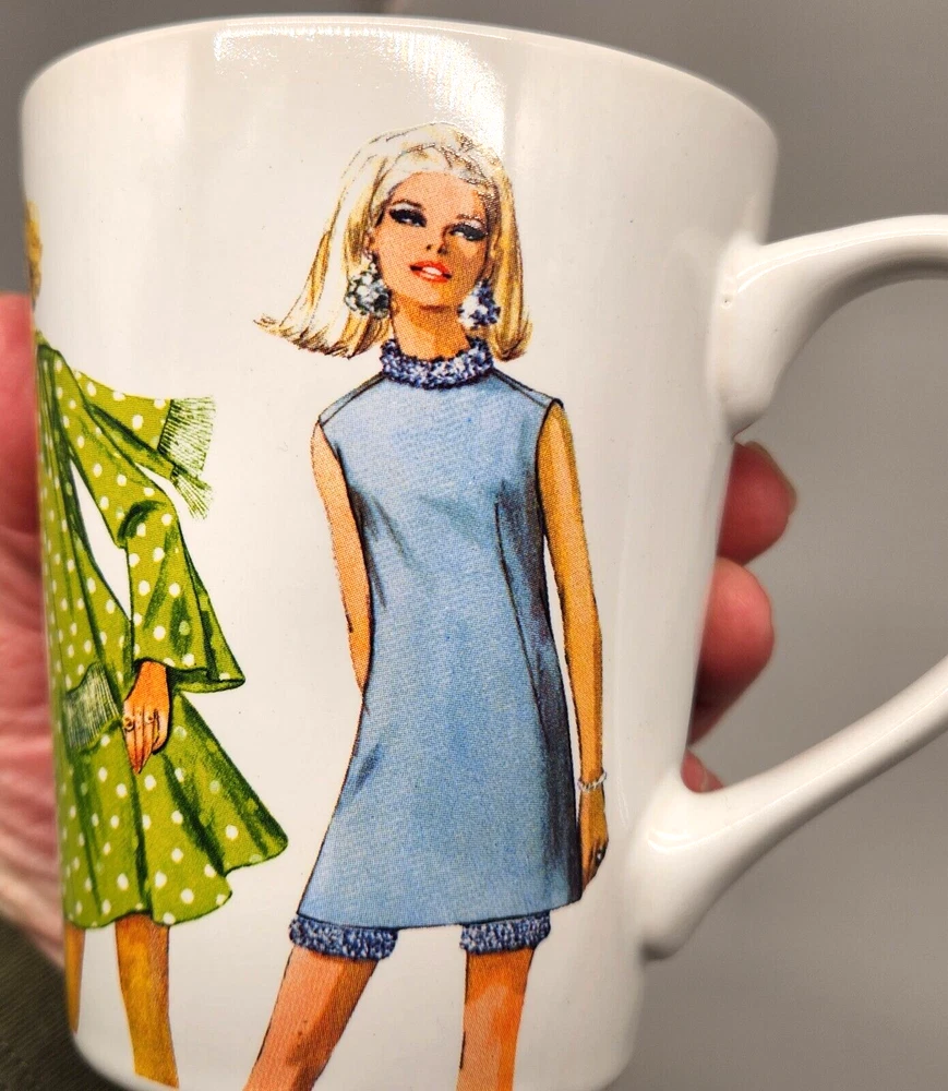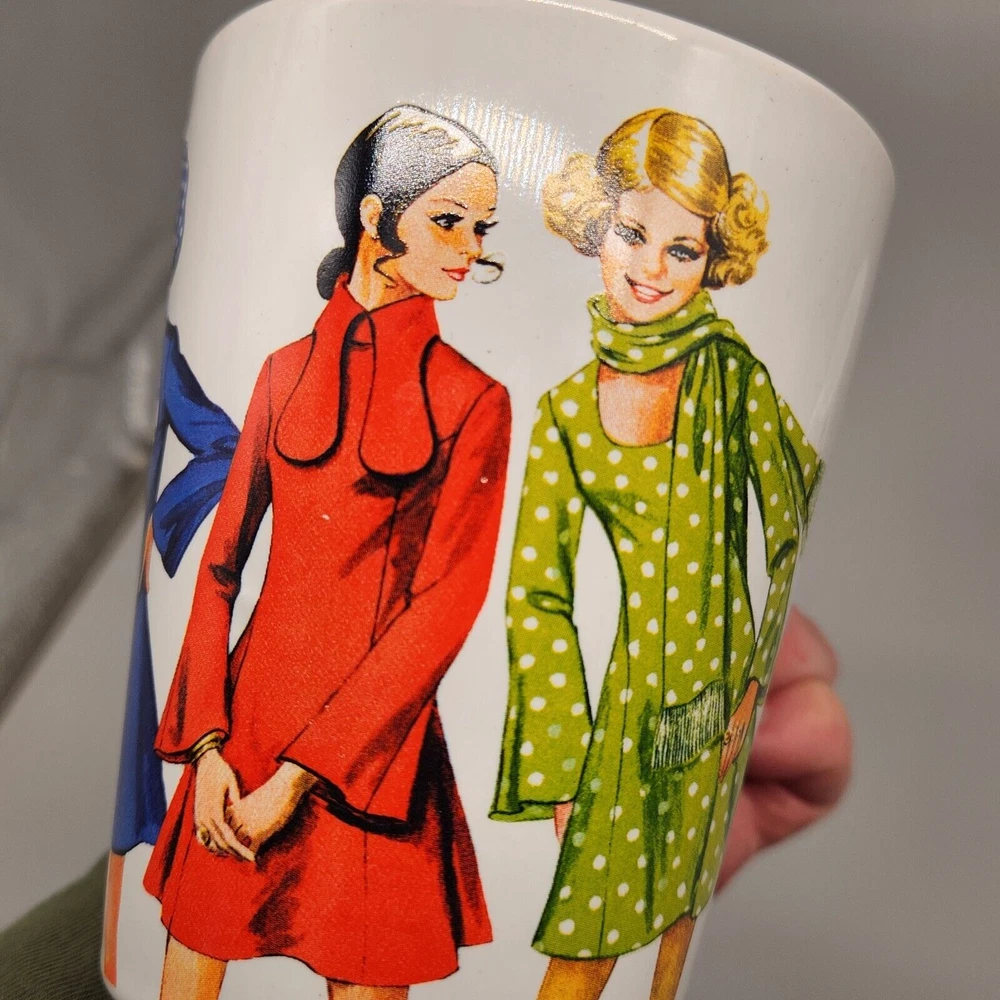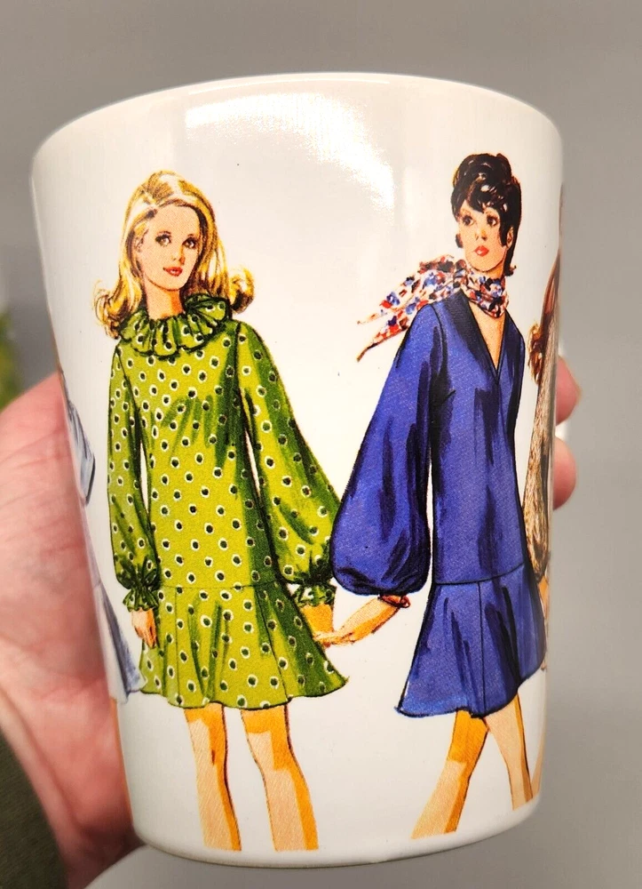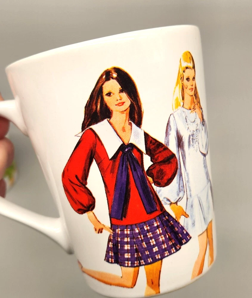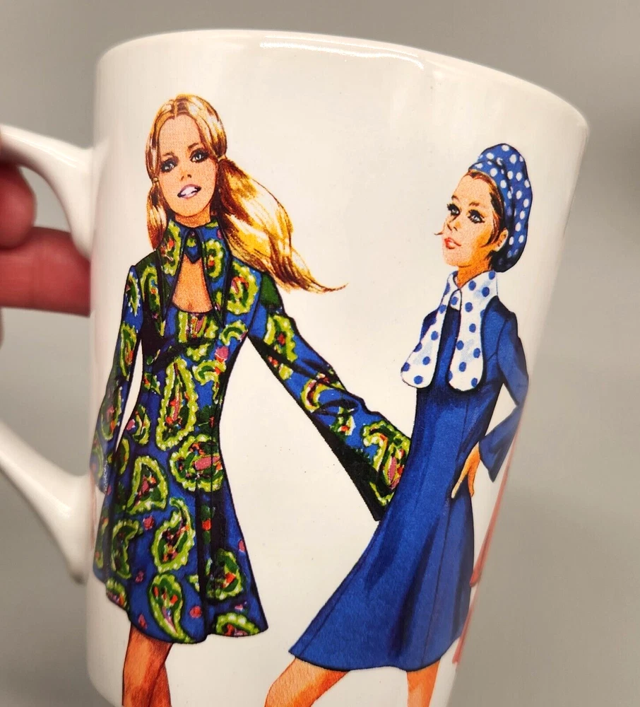 Sip your coffee like it's 1970, darling! These mugs feature groovy fashionistas strutting their stuff in retro threads. If only they could talk, they'd probably spill the tea on disco nights and roller-skating dates. Embrace the nostalgia and serve up some fabulousness with every cup. • Set of 2 mugs • Simplicity Vintage design • Durable ceramic material • Fashion prints from 1970 • Comfortable handles Height = 4 inches Used but in very good condition. No chips or cracks. See photos for details.