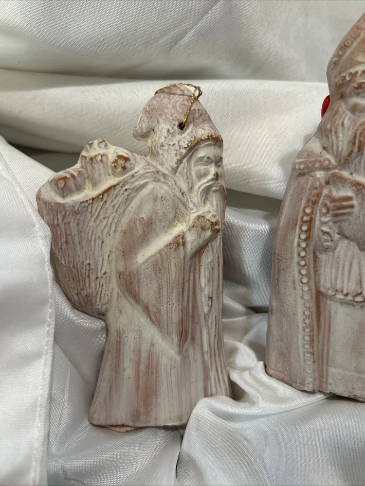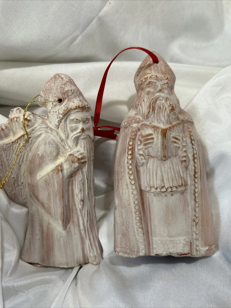 These 2 ceramic old world Santa’s are very unique! Would look cool hanging from a tree with similar ornaments! No chips or cracks!