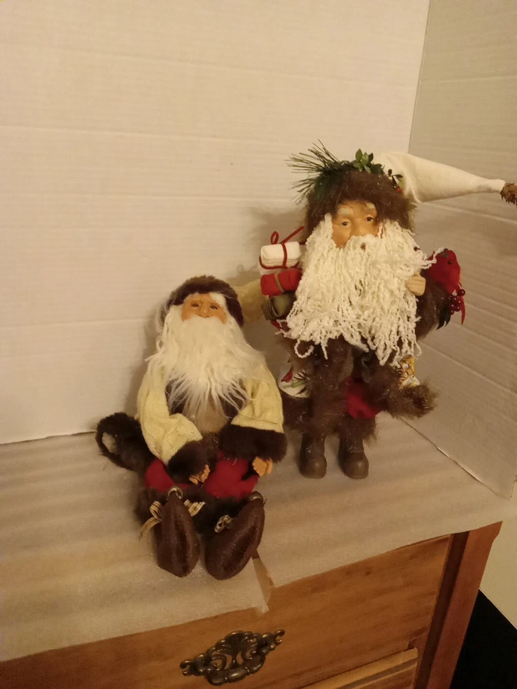 Set Of 2 Vintage Old World Santas On Sitting, One Standing