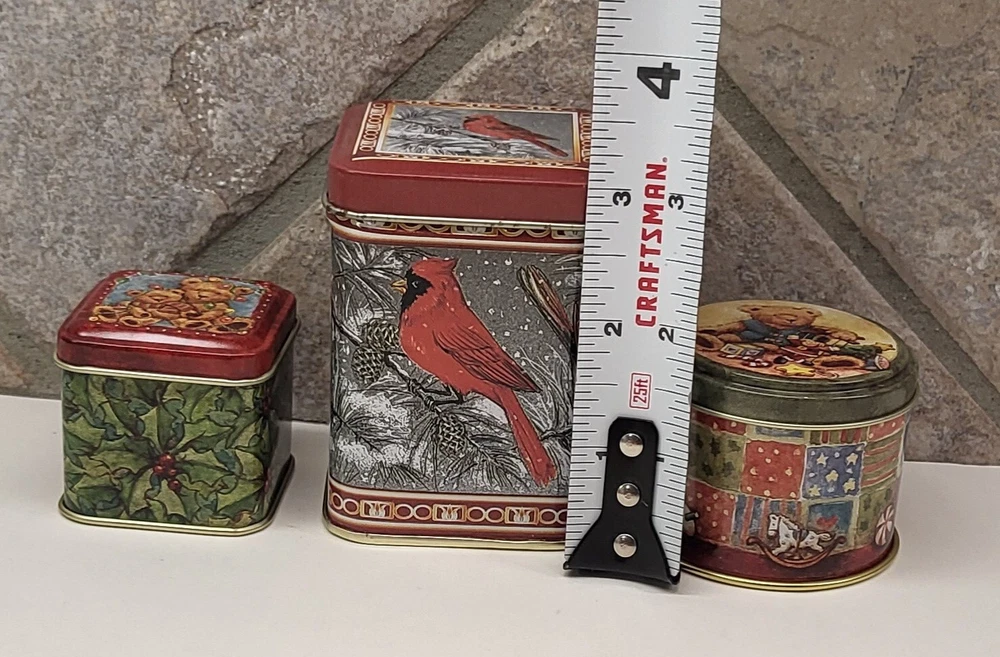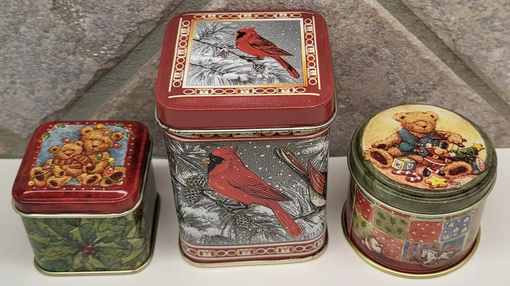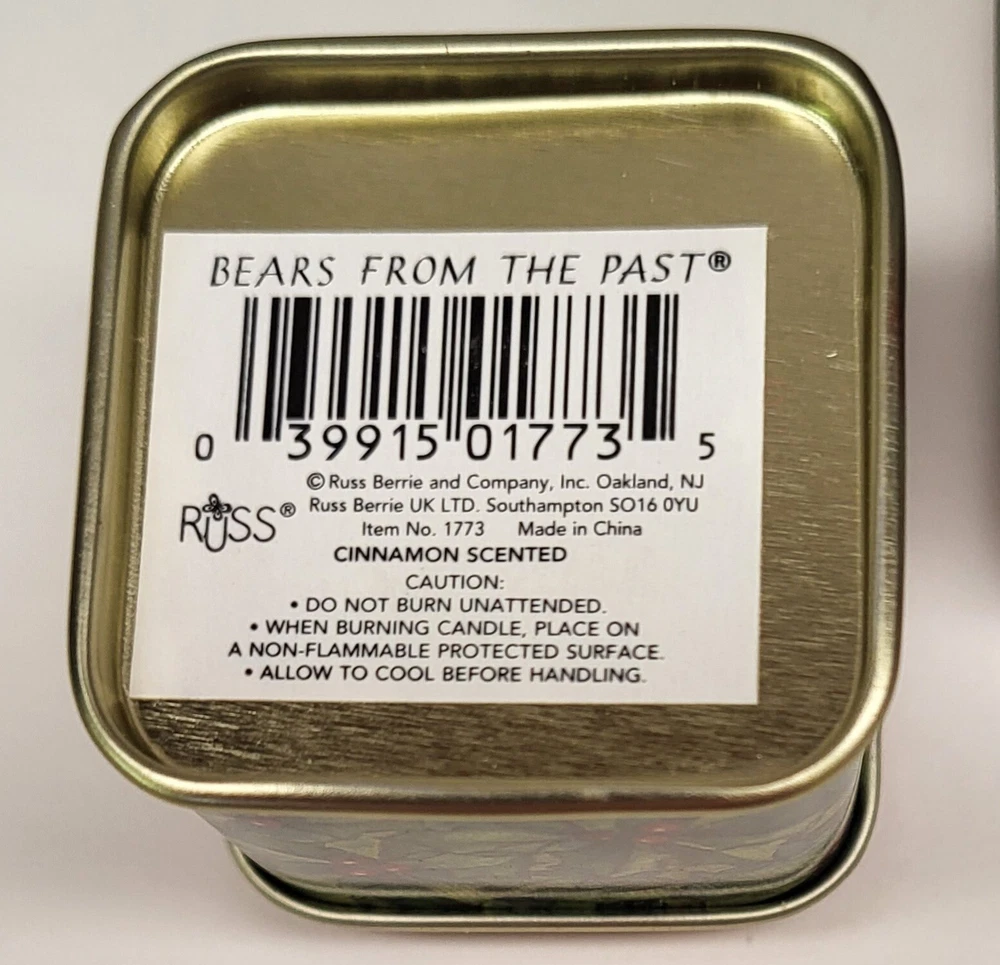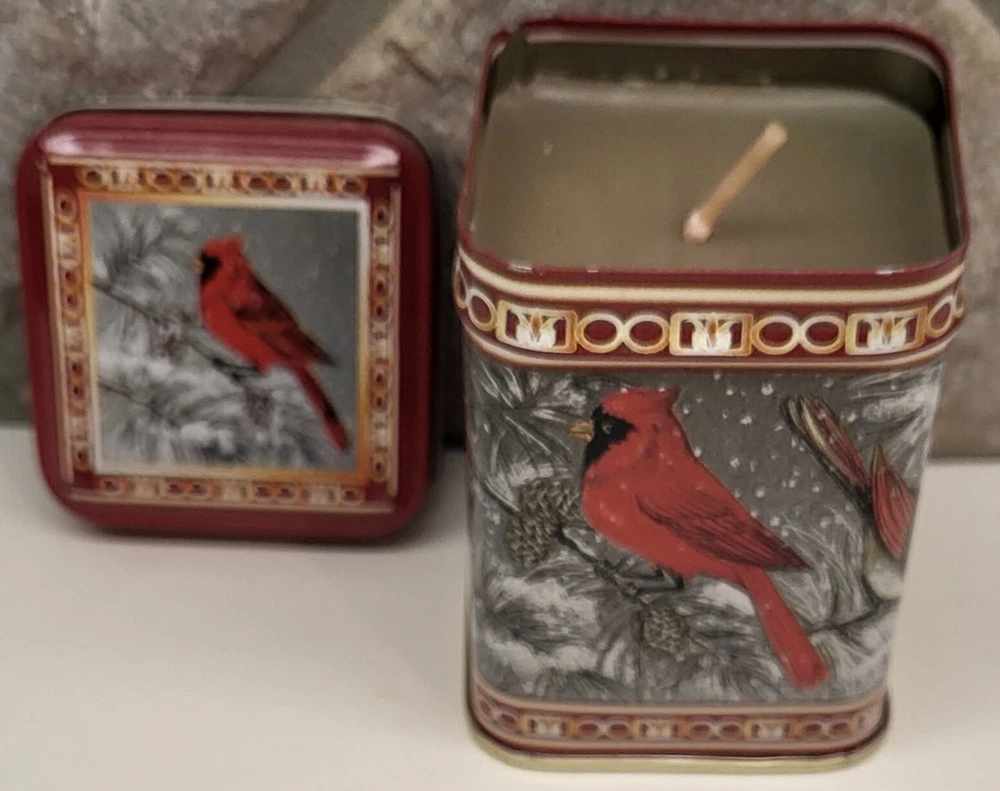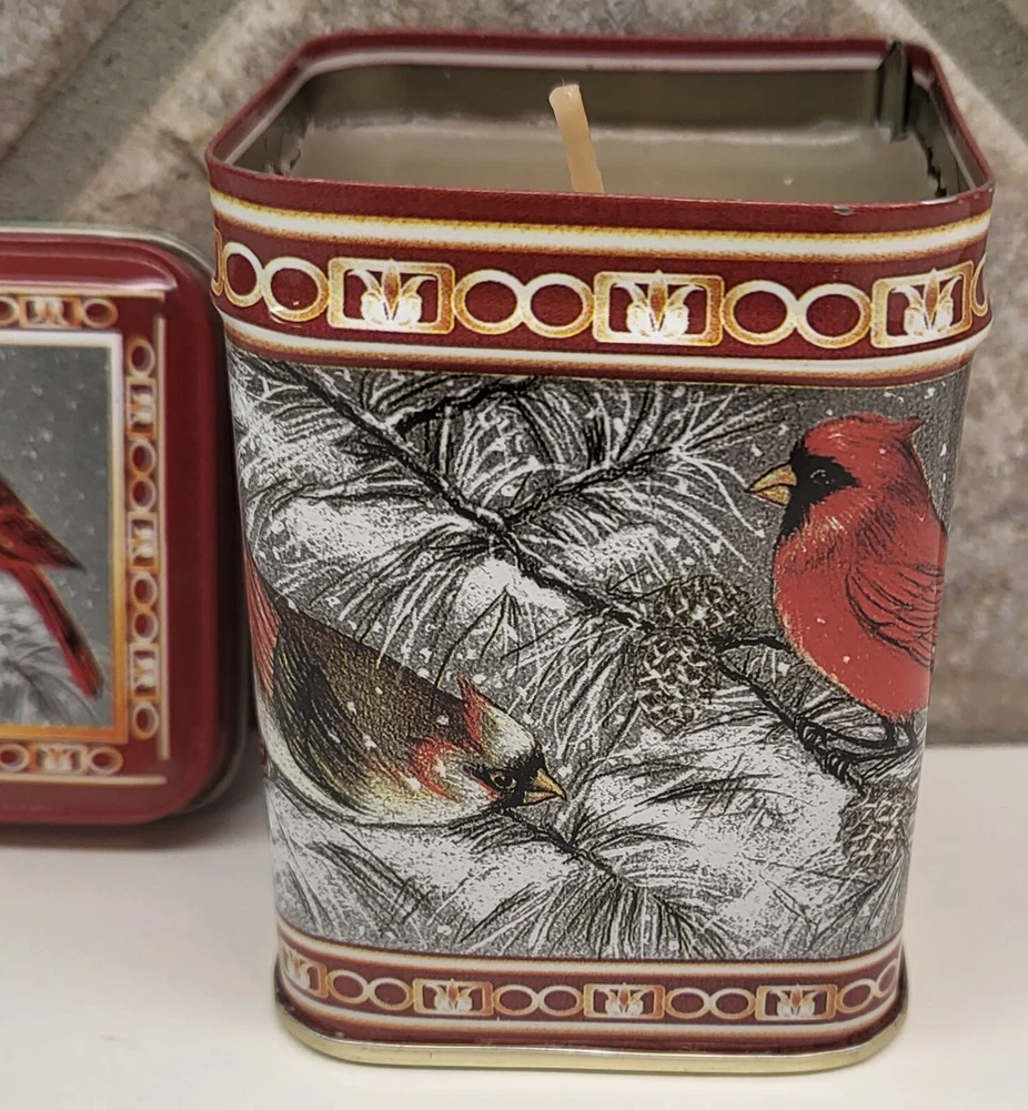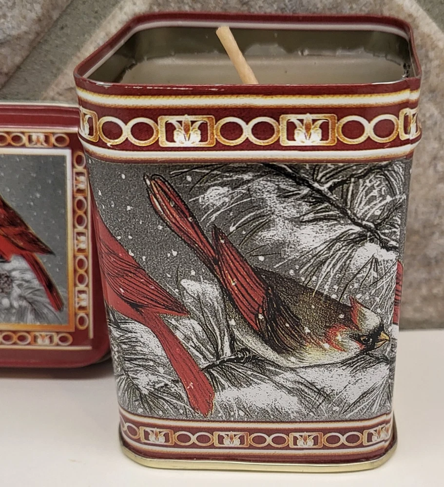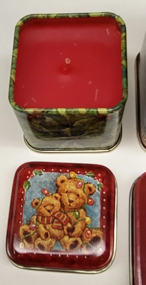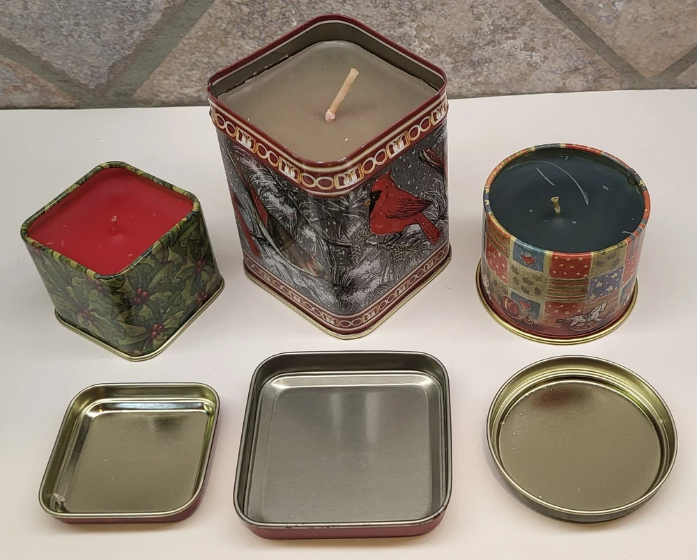 Set of 3 Christmas Candles in Metal Tins. Two Russ Berrie Bears of The Past and one with Cardinals. Excellent unused condition. Shipping will be USPS Ground Advantage Mail. Thank you.