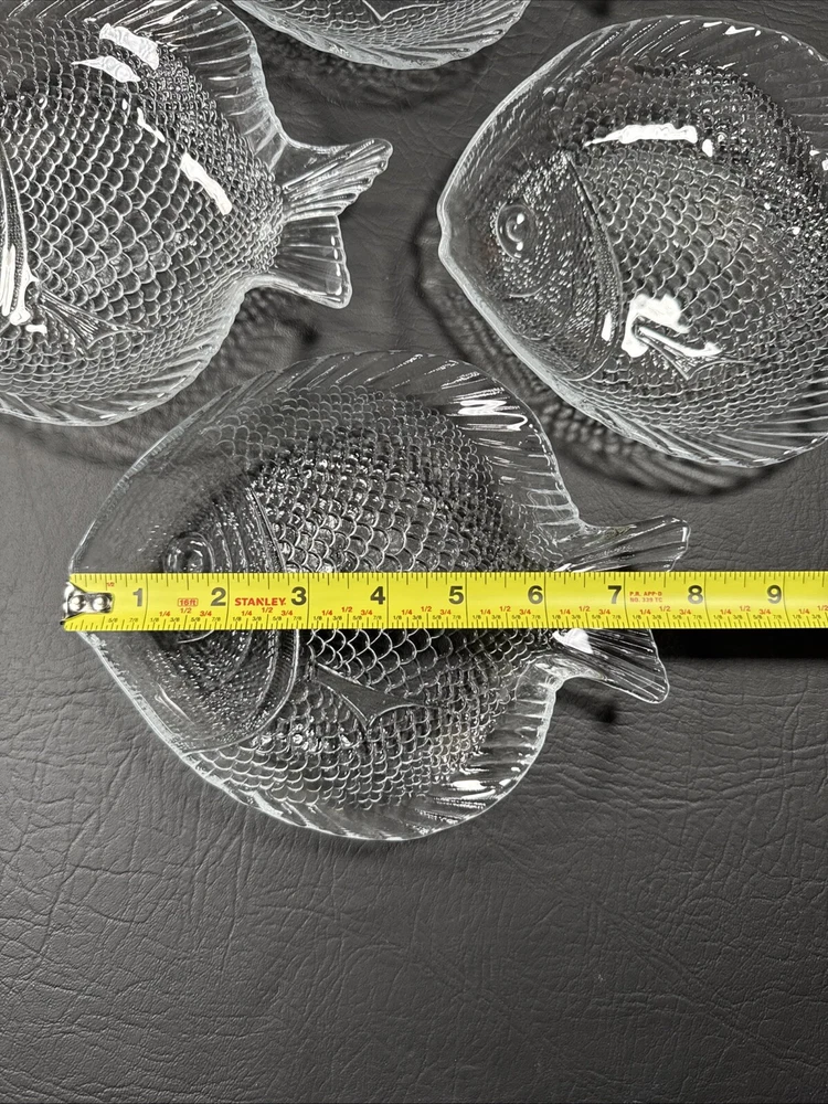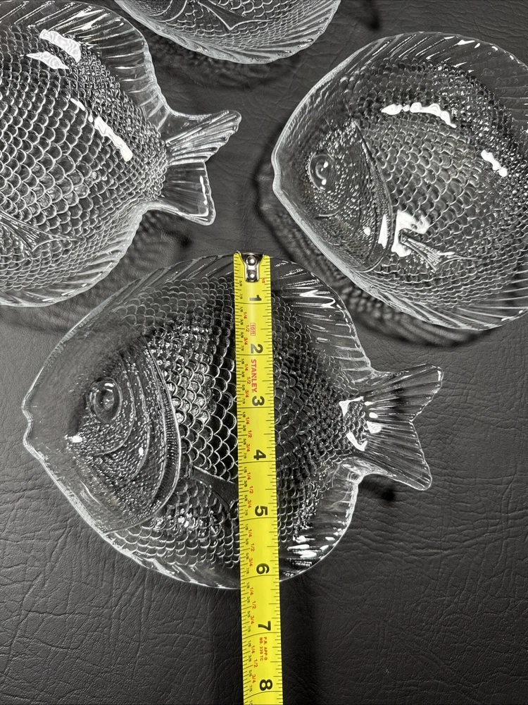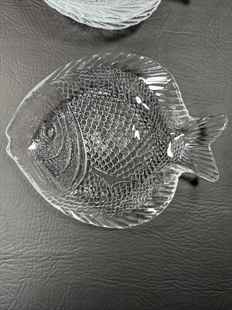 Fish Plates made by Pasabahce located in Istanbul Turkiye AKA Turkey. Plates are in excellent condition. Check Photos closely for condition and details. Packed carefully for shipping. Priority Mail Recommended!