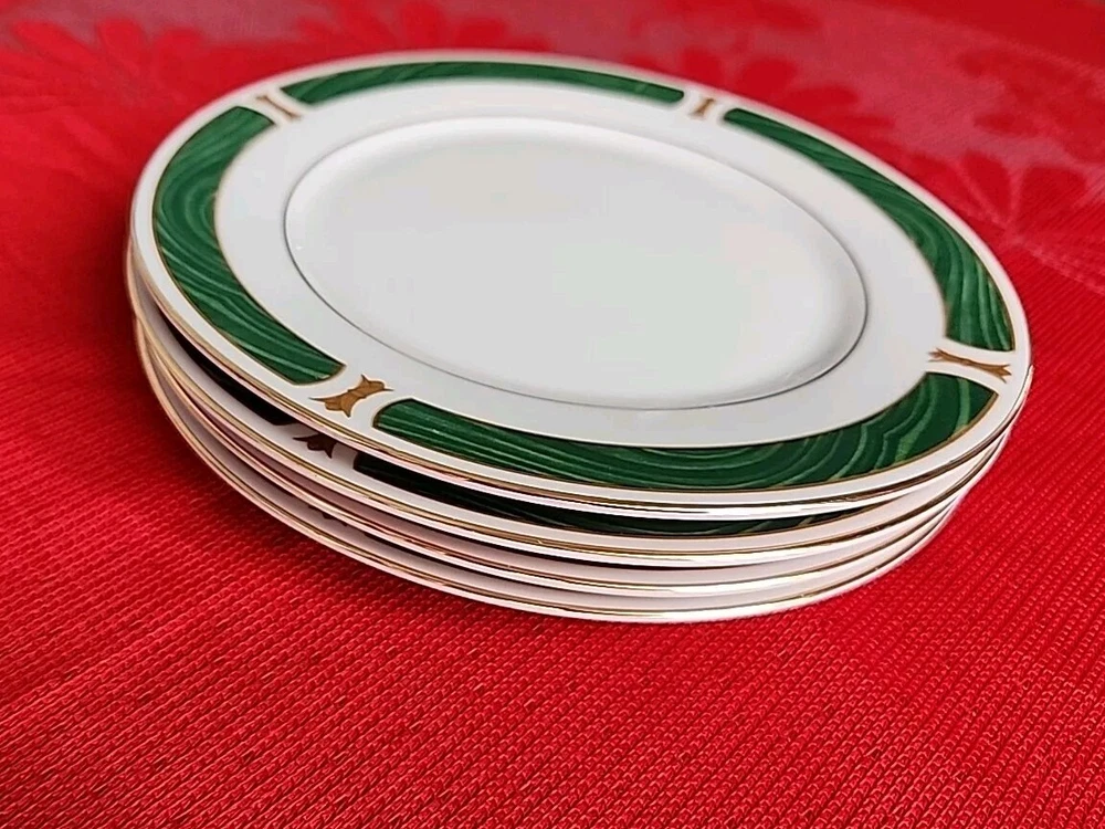 Set Of 4 Sango Majesty MALACHITE 7-5/8" Salad Plates 8420 Fine China Nice!