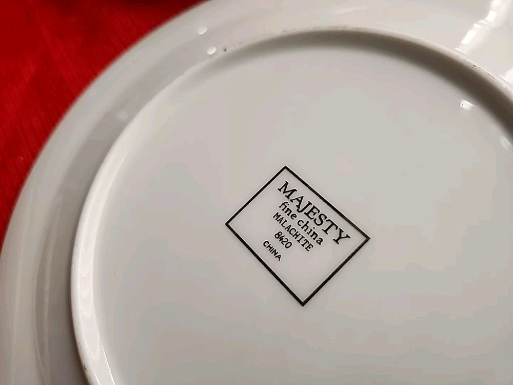 Shape: Round Origin: china Brand: Sango Type: Salad Plate UPC: Does not apply Occasion: All Occasions Main Color: White Color: White Vintage: Yes Product Line: Majesty MPN: 8420 Production Style: Art Pottery Era: Late 20th Century (1970-1999) Department: Unisex Kids, Teens, Adult Original/Licensed Reproduction: Original Number of Items in Set: Four-Piece Finish: Glossy Style: Art Deco Antique: No gtin13: Does not apply Pattern: Malachite Theme: Marble Look Backstamp: Printed Features: Decorative Handmade: Yes Country/Region of Manufacture: China Set Includes: Salad Plate Material: Porcelain Production Technique: Pottery