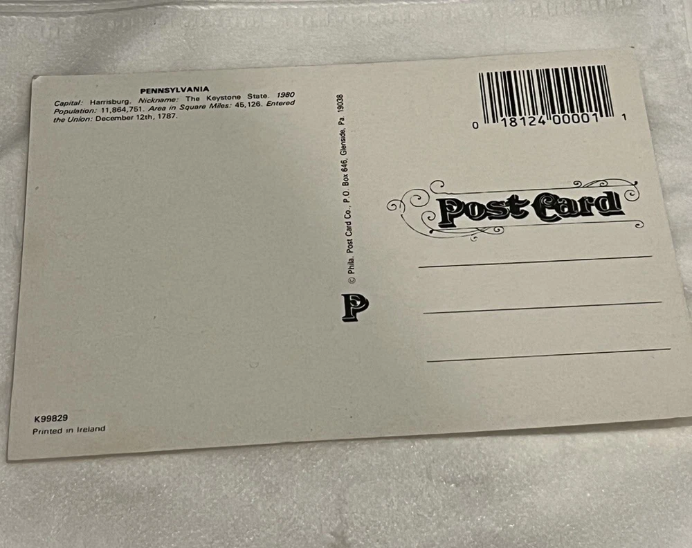 Set Of 4 Vintage Pennsylvania Postcards Liberty Bell , Valley Forge, Map of Pennsylvania with Highlights about Pennsylvania and Chinatown. These are from the Philadelphia Post Card Co. Price is for the set of 4 cards.