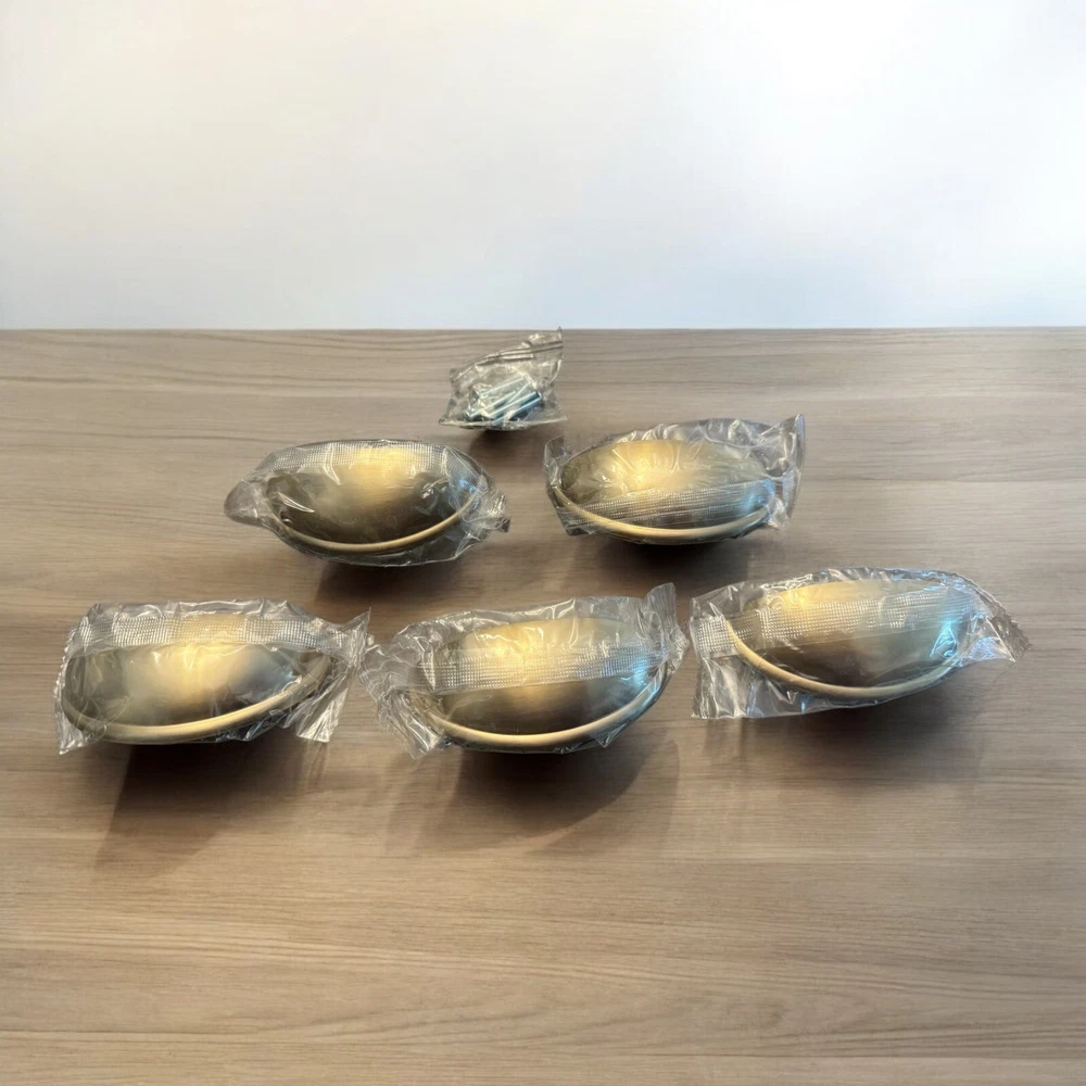 Set Of 5 Matte Gold Cup Drawer Pull 3” Hole Spread With Screws