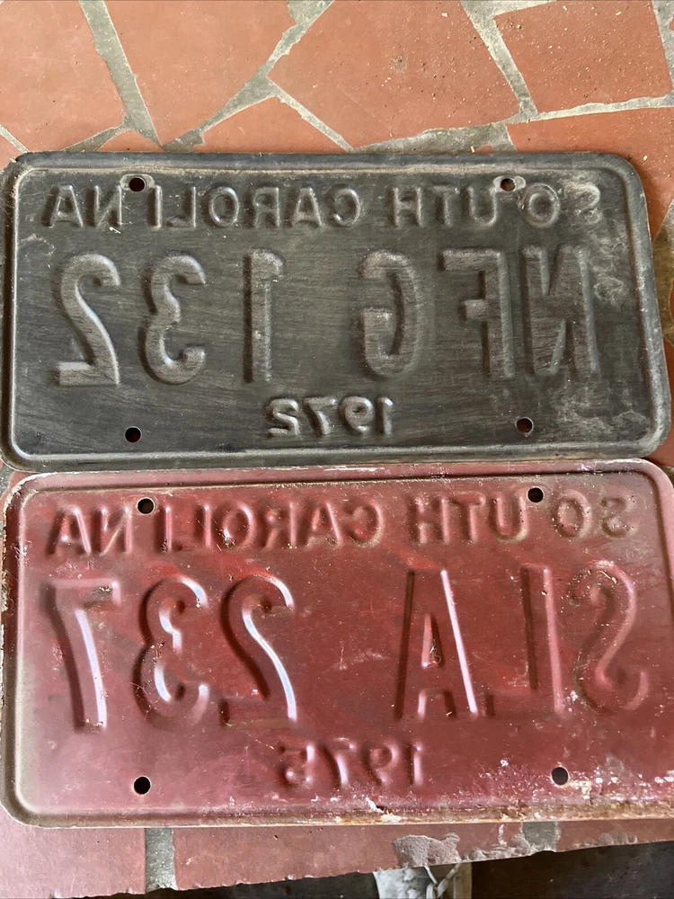 Add a touch of vintage to your collection with this set of two license plates. These plates are perfect for any collector or enthusiast of vintage automobilia. The plates are made with high-quality materials and feature a classic design that will make a great addition to any collection. The plates are ideal for display on a wall or in a frame, and their unique design is sure to catch the eye of anyone who enters the room. These plates are perfect for those who love vintage cars or simply appreciate the history behind them. Add this set of two vintage license plates to your collection today!