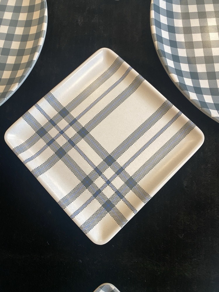 HomeSet of 10 Blue White Melamine Plaid & Checked Plates Round 10" Square 6"