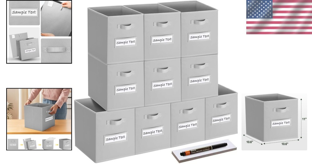 Set of 10 Foldable Fabric Storage Cubes with Labels ‹ › ‹ › ‹ › ‹ › ‹ › ‹ › ‹ › ‹ › Set of 10 Foldable Fabric Storage Cubes with Labels Add organization and elegance to your home or office with this exquisite set of foldable fabric storage cubes. Ideal for managing clutter, these sturdy and stylish cubes make tidying up an effortless endeavor. Features: Solid Construction: Each cube is crafted from heavy cardboard and quality fabric, ensuring they are super sturdy and capable of holding clothes, linens, toys, towels, books, and more. Perfect Size: Dimensions of 10.6"L x 10.6"W x 11"H provide generous space for a variety of items, making these cubes the perfect addition to your organizing arsenal. Convenient Label Cards: Each storage cube features a transparent slot for label cards, allowing you to easily mark the contents and find what you need when you need it. Collapsible Design: Easily unfold each cube to store your belongings and simply fold them up when not in use, saving space and providing ultimate convenience. Exceptional Value: Many customers appreciate the excellent quality and functionality, noting that these storage containers provide ample storage space while adding a chic touch to any room. Benefits: Efficiently organize your space while keeping it stylish and sophisticated. Saves time and reduces frustration by simplifying the process of locating items. Durable material ensures long-lasting use, standing the of time. Perfect for children's toys, office supplies, and home essentials alike. Collapsible feature means they won’t take up unnecessary space when not in use. Why choose our Foldable Fabric Storage Cubes? If you seek a practical yet elegant solution to decluttering your living or work environment, our Set of 10 Foldable Fabric Storage Cubes is your answer. Offering robust storage capabilities combined with stylish labeling, these cubes allow you to work smarter, not harder. Enjoy the harmonious blend of utility and aesthetic appeal as you transform your space into an organized oasis. Take the first step towards an impeccably organized home. Order your set of Foldable Fabric Storage Cubes today and experience the brilliance of seamless organization! Shipping Free & Fast Shipping - We offer free shipping to most of the USA with a normal delivery time of 3-10 business days. However, due to various situations, additional delivery time (up to 3 weeks) may be required for some items. Alternative Carriers - We may use alternative carriers (e.g. USPS, FedEx, UPS, etc.) to ensure your package arrives safely and on time. Due to the use of multiple carriers, we are unable to provide a tracking number automatically. Handling Time - Orders are processed and shipped within 1-5 business days of receiving cleared payment. Shipping Restrictions - Shipping to Alaska, Hawaii, Puerto Rico, Guam, and other US territories may incur shipping charges or delivery restrictions. Please contact us before ordering, or your order can be refunded/cancelled. State Restrictions - There may be restrictions based on your state of purchase. For example, certain items may not be shipped to California due to state regulations. Contact for Tracking Updates - If you require tracking updates or have any concerns about the delivery of your order, please feel free to contact us, and we will be happy to assist you. Return 30-Day Hassle-Free Returns - We want you to be completely satisfied with your purchase. If you are not, you can return the item within 30 days of receiving it for a full refund or exchange. Easy Return Process - To start a return, simply contact us and we will provide you with a prepaid return shipping label and detailed instructions. Restocking Fee - There are no restocking fees for returns. However, the buyer is responsible for return shipping costs if the return is not due to a seller's error. Refund Processing Time - Refunds will be processed within 5 business days of receiving the returned item in its condition. Payment We accept all major credit cards, PayPal, and Apple Pay for your convenience. Your payment information is secure and encrypted to ensure a safe and seamless transaction. Please complete your payment within 3 days of purchase to avoid any delays in shipping. Feedback Your feedback is extremely important to us. We strive to provide the best products and customer service possible. If you are satisfied with your purchase, please take a moment to leave us a positive review. If you have any concerns or issues with your order, please contact us before leaving negative feedback. We are committed to resolving any problems and ensuring your satisfaction. Contact Us If you have any questions or concerns, please feel free to out to our customer support team. You can contact us through the eBay messaging system. We are available Monday to Friday, 9:00 am to 5:00 pm EST, and we will do our best to respond to your inquiry within 24 hours. Buy it now and enjoy a pleasant shopping experience! Unit Quantity: 10 Material: Cardboard,Fabric Features: Foldable,Collapsible Mounting: Free Standing Item Height: storage cube bins Item Length: storage cube bins Item Width: storage cube bins Type: Storage Basket Item Weight: 9.46 lb Capacity: 81 - 120 Quarts Item Depth: 11 in Number of Items in Set: Ten-Piece Color: Light Grey Number in Pack: 10 Number of Compartments: 10 Shape: Square Style: Modern