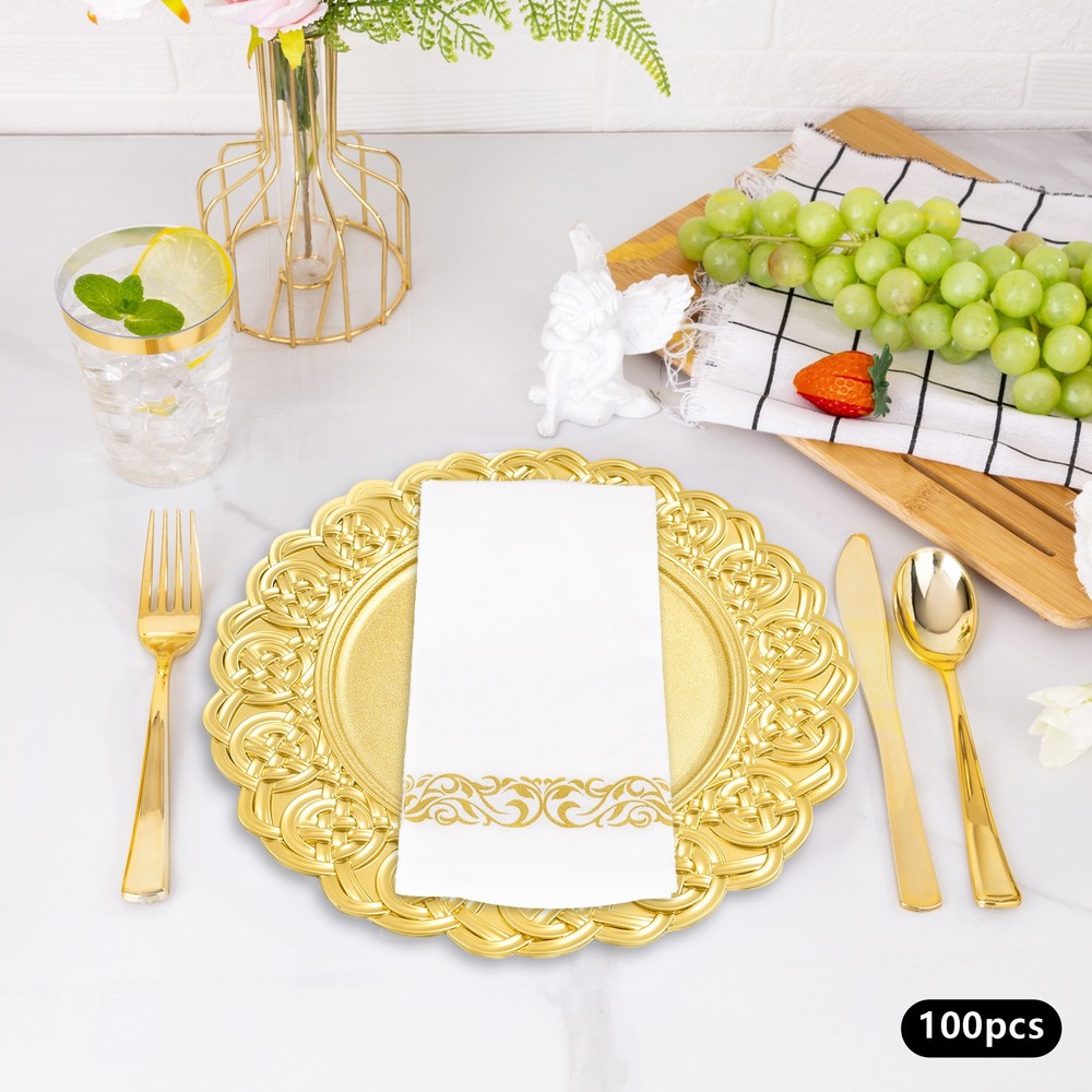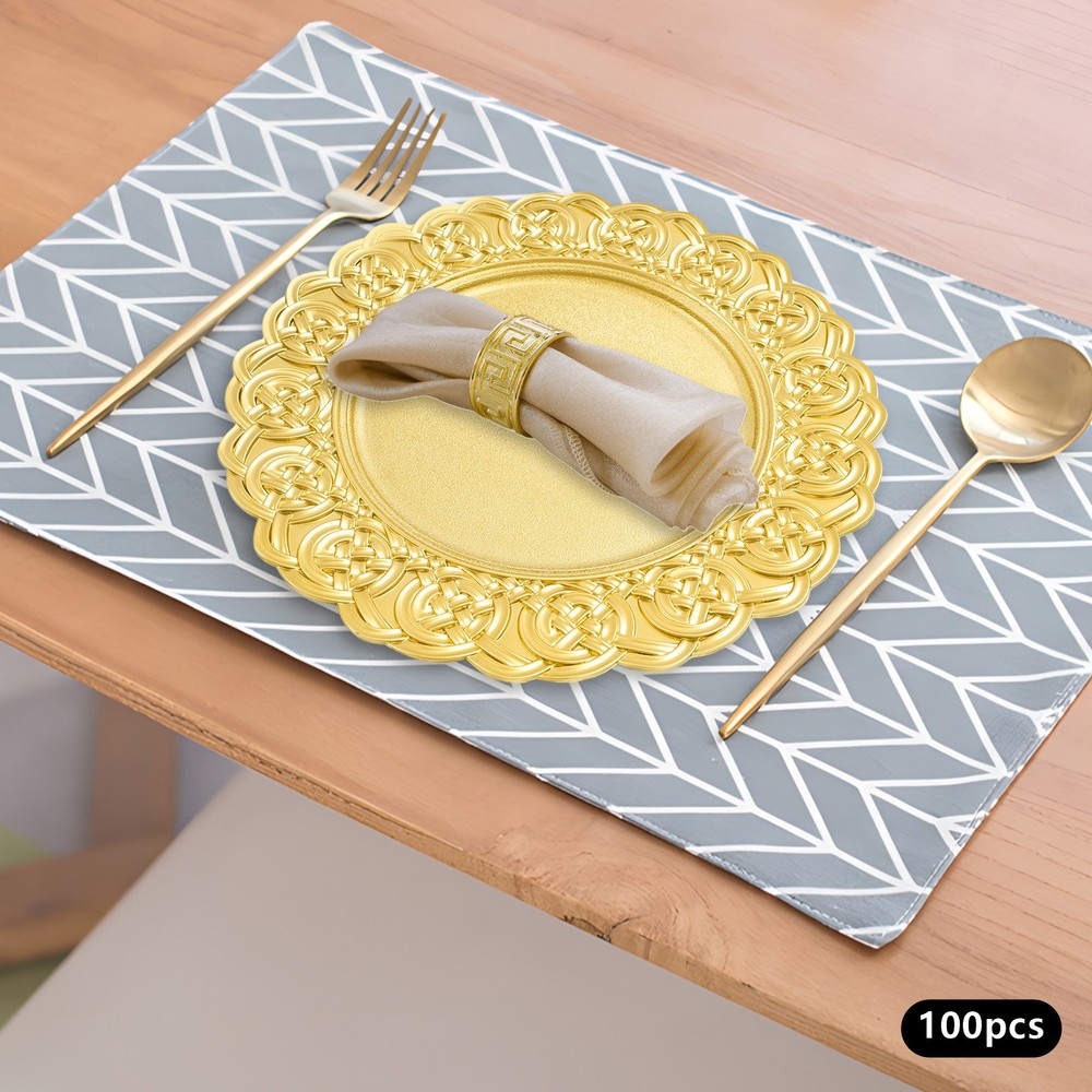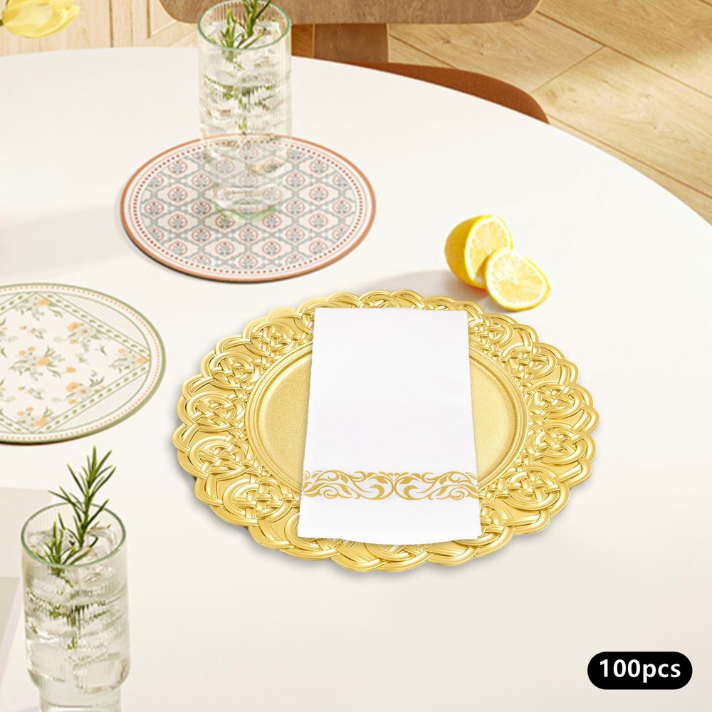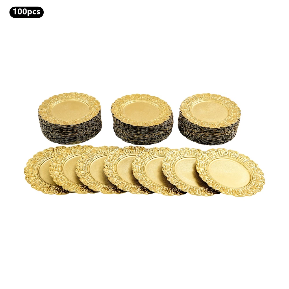Application This product can be used for weddings, banquets, restaurants, hotels, daily life, traveling, camping, picnics, barbecues, or other events. Specification Mount Type: Desktop Assembly Required: No Style: Modern Shape: Round Color: Gold Material: Plastic Process: Spray-painting Number of Plates: 100 Each Plate Size(D*H): 33*2cm/13*0.79in Package Size: 50*33*33cm/19.7*13*13in Gross Weight: 19kg/41.89lbs Net Weight: 18.05kg/39.79lbs Package Included 100* Dinner Charger Plates Set of 100 Elegant Reef Plastic Charger Plates 13inch Round Dinner Wedding Party Description This 100-piece dinner charger plate set is crafted from premium plastic, making it long-standing and great for your tableware needs. Featuring intricately designed edges with a hint of gold finish, it brings a sense of refined elegance to various gatherings and celebrations, enhancing your table setting with subtle sophistication and personal style. Key Features Engineered for Longevity: Premium spray-painted plastic provides rugged hardness while defending against breakage, fade, and scratches for reliable performance over time. 100-Piece A Set: This set includes 100 pieces of plates, offering a cohesive look for serving multiple guests at once—ideal for family gatherings, business dinners, or everyday restaurant use, helping to streamline your dining setup with consistent style. Suitable Size: With a 13-inch diameter, these plates work well as salad or dinner plates, adding visual appeal to the table while helping to keep it neat and protected. Exquisite Decoration: The minimalist round design, paired with a refined gold hue and subtle detailing, adds a touch of sophistication to the table setting, enhancing its overall aesthetic and serving as an attractive decorative element. Luster Your Banquets: Whether it's a business banquet or a family dinner, this charger plate will make your guests rave about it. The classic gold color will shine under the ambient lighting, creating an elegant visual effect. Easy Storage: When you are not using them, these plates can be easily stacked together and conveniently stored in the cabinet, effectively saving space. Easy to Clean: The smooth surface and simple structure allow you to clean them easily with a soft cloth (not included). Ideal Gift: This beautiful and high-grade dining charger plate set is an ideal housewarming gift or holiday gift for your friends, family, and coworkers. Customer Service: We aim to provide quality products and services. If you have any problems, please feel free to contact us. We will reply and solve the problem for you as soon as possible. Details Sleek Edges: Smooth, rounded edges elevate the product’s style while safeguarding against sharp corners, making it both beautiful and safe to use. Thoughtful Raised Bottom: This thoughtful design allows for easy plate handling from the table surface, while also providing added stability when the plate is set down. Application This product can be used for weddings, banquets, restaurants, hotels, daily life, traveling, camping, picnics, barbecues, or other events. Specification Mount Type: Desktop Assembly Required: No Style: Modern Shape: Round Color: Gold Material: Plastic Process: Spray-painting Number of Plates: 100 Each Plate Size(D*H): 33*2cm/13*0.79in Package Size: 50*33*33cm/19.7*13*13in Gross Weight: 19kg/41.89lbs Net Weight: 18.05kg/39.79lbs Package Included 100* Dinner Charger Plates Notes Please check the style and size before purchasing. Please note that knives, forks, and food are not included in this product. Please note that this product is not washable or dishwasher-safe. We recommend that you carefully wipe down the inside of the plate before use. Please allow the slight color difference caused by the shooting light and 1-3cm error due to manual measurement and make sure you do not mind before ordering. Payment Delivery details Terms of sales About us Contact us Payment We accept ebay payment 。 Fees such as import duties, taxes are not included in the item price or shipping costs. These charges are the buyer's responsibility. Delivery details Shipping: 2-9 working days to: USA Terms of sales We maintain high standards of excellence and strive for hundred percent customer satisfaction. Feedback is very important to us. We hope that you contact us immediately before you give neutral or negative feedback, so that we can address your concerns. It is impossible to address issues if we do not know about them! About us Your satis faction is our ultimate goal. We work hard to earn your trust and future business. Our certified technicians have tested each item before shipping. The unit comes with 1 year limited warranty on all manufacturing defects. a) If you receive a defective item, you may return it or ask for a discount. Please contact us within 14 days after you receive the package. b) What you returned must be intact and in its original packaging as re? u. Customer is responsible for shipping costs of the returned item. c) We will cover the cost of shipping back t with the shipping rate indicated in the registration page. We will send you a new unit or refund the full payment you paid. Thank you. Contact us Business Hour Business Hour: Monday To Friday: 8:30 AM to 5:00 PM (Beijing China time) Due to time zones, our reply to your questions may not be immediately. But within above working time, we will reply your email within 24 hours. If it's non-workdays, please kindly be patient and wait till Monday. Please contact us with ebay message. Please feel free to contact us if you have any questions. Monday To Friday: 8:30 AM to 5:00 PM (Beijing China time) Due to time zones, our reply to your questions may not be immediately. But within above working time, we will reply your email within 24 hours. If it's non-workdays, please kindly be patient and wait till Monday. Please contact us with ebay message. Please feel free to contact us if you have any questions.