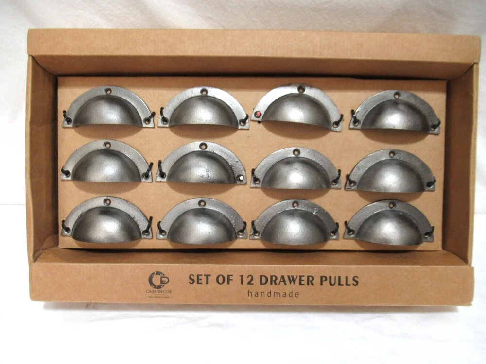 Set of 12 Casa Decor Gunmetal Gray Farmhouse Style Half Cup Metal Drawer Pulls They are Brand New In The Original Packaging - Unopened - Please see all of the photos as they are part of the description I don't Sell Knock offs or imitations ** I am in no way associated with this brand, therefore any assumed or implied guarantees, warranty and or return policy, associated with this brand are not covered. If you do have any issues or concerns please feel free to contact me. ** Attention VeRO members: I am not affiliated or endorsed by the companies mentioned in this listing. All trademarks and copyrights are acknowledged, they are only used for informative description of the items offered for sale. All items are authentic as evidenced in photos, legally acquired and owned, and hence covered under First Sale Doctrine. Warning. Everything sold into the state of California contains agents known to the state of California to cause cancer and birth defects, reproductive harm, or other, as yet unnamed, harm to its citizenry. I TRY MY BEST TO LIST EVERY ITEM AS ACCURATELY AS POSSIBLE, HOWEVER, I AM ONLY HUMAN AND SOMETIMES MISTAKES ARE MADE. I AM A VERY FAIR AND HONEST SELLER AND MY FEEDBACK AND EBAY REPUTATION ARE VERY IMPORTANT TO ME. I ASK THAT IF YOU HAVE A PROBLEM WITH YOUR PURCHASE PLEASE COME TO ME PRIOR TO LEAVING ANY TYPE OF FEEDBACK FIRST SO WE CAN WORK IT OUT