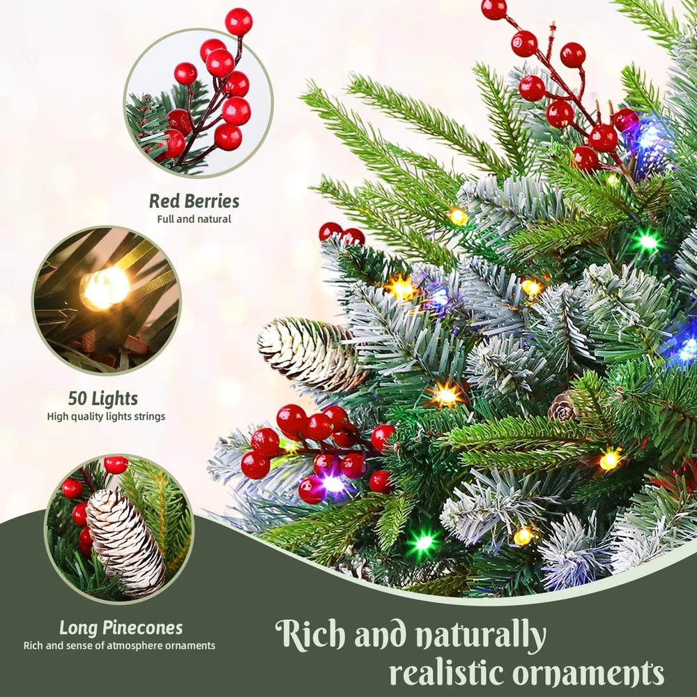 Set of 2 18 Inch Lighted Outdoor Christmas Tree with Remote, Timer, Multi-Color Lights, Battery Operated Pre-lit Frosted Pathway Artificial Urn Filler, Christmas Porch Decorations for Home Porch Yard đăPerfect ChoiceăIf you are looking for a beautifully shaped, high-quality mini artificial Christmas tree, consider this 18-inch prelit LED tree for your porch or yard Christmas decorations. Size: 18inch/1.5ft. đăRemote and Timer DesignăOur Christmas tree is equipped with a remote control, allowing you to set 23 timer lighting types or directly adjust the light brightness within a range of 10 meters, without needing to approach the tree. It offers 5 timer modes, so you can choose fixed lighting durations. đăPre-lit Lights&Pre-Decorated DesignăThe tree comes with 50 warm white and colored LED lights, featuring 8 lighting modes and 5 brightness levels. It comes pre-decorated with 8 bunch of red berries, 8 pinecones and 10 pine branches, with full branch tips and natural looking. đăBattery OperatedăWith a 3C battery box design, the simplified battery box eliminates the need for a plug-in outlet, allowing you to place the tree anywhere. This charming artificial mini Christmas tree adds a festive atmosphere to both indoor and outdoor settings. đăEasy to Assemble & Widely UseăThe Christmas tree is composed of two parts, making it very easy to assemble or disassemble.You could put those trees to home, or to outdoor, such as driveway or in pots by the front door, its durable tripod stake provide stability and helps keep your outdoor Christmas tree uprig