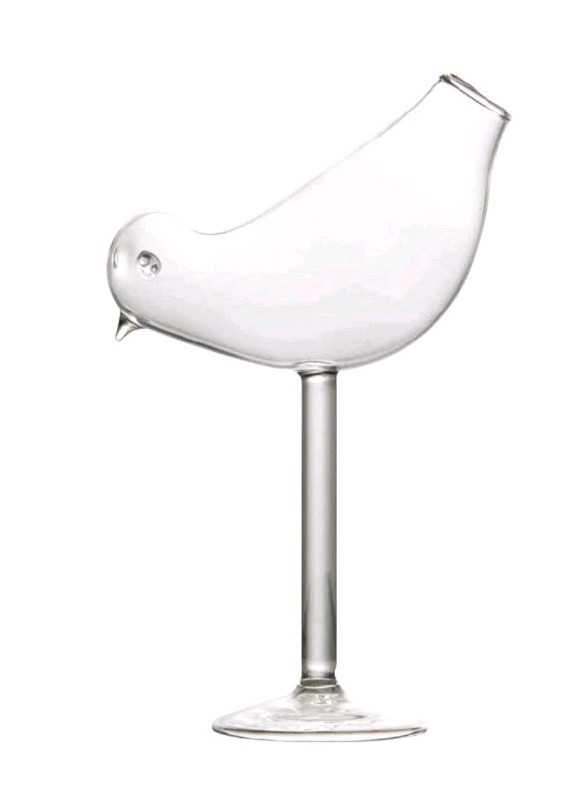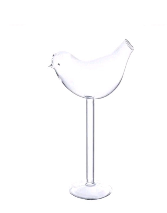 This set of 2 bird-shaped cocktail glasses is perfect for serving your favorite drinks in style. Made of clear glass, these unique wine glasses are great for adding a fun and whimsical touch to your barware collection. The set includes two bird-shaped glasses, making them ideal for entertaining guests or adding a touch of charm to your kitchen or dining room. Cheers to fun and elegance with these adorable bird glasses.