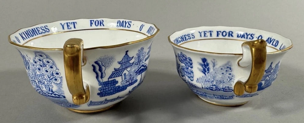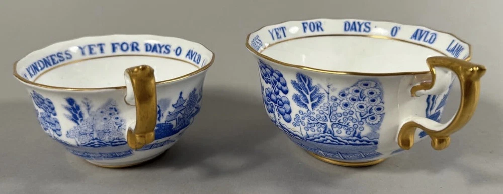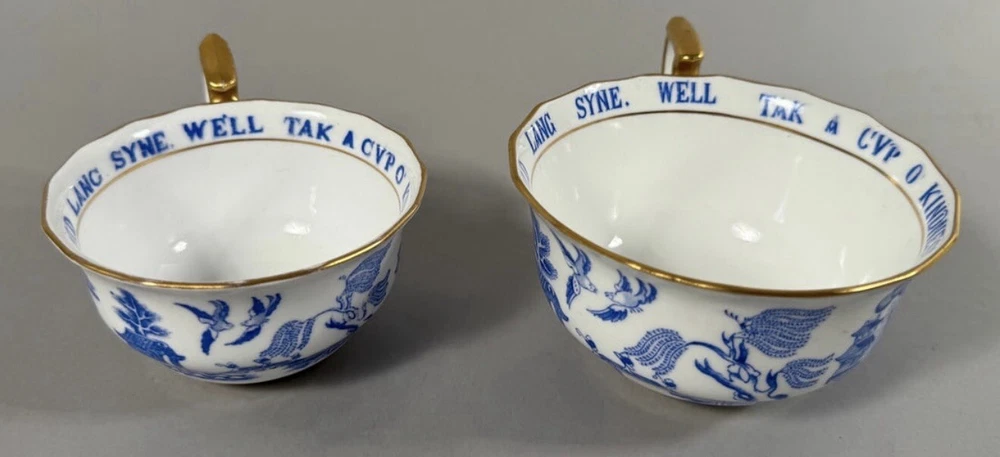 Set of 2 - Copeland China England Retailed by Tiffany and Co. Copeland China, Endland. Retailed by Tiffany and Co. D: Large cup 2.75"h x 4.50" diameter. Small cup 2"h x 4" diameter. Condition Fair. Small chip on large cup. Signs of use.