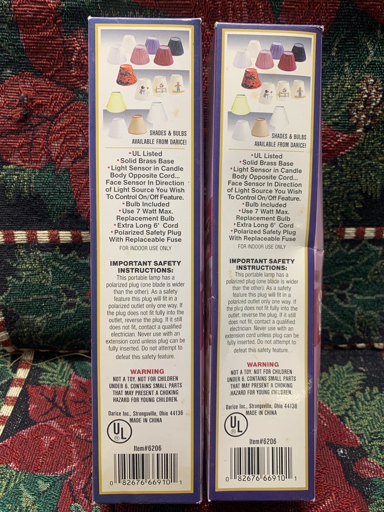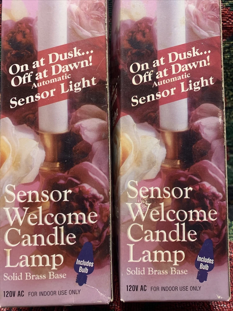Set of 2 Darice Electric Candle Lamp Automatic Sensor Brass Plated Base NEW