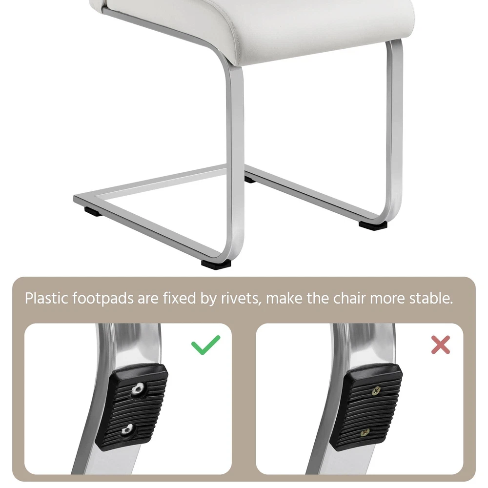 Comfortable: ergonomic curved back and a soft padded seat provide day-long comfort without feeling back pains, so you will not feel tired even after long-time sitting; good quality PU leather seat really feel soft when you sit on it. High Quality: the office chair is made of premium PU leather, sponge, electroplated iron, plywood, and non-woven fabric, and the legs are chrome-plated, sturdy and durable to use; solid chair is sturdy enough to hold up to 135 kg / 297.6 lb Easy cleaning: The water-resistant PU leather surface can be easily wiped clean with a damp cloth and mild cleansers. Thoughtful: anti-scratch pad can can prevent accidental wear of the desk chair and can avoid scratching the floor and prevent sliding. Versatile: dining chair is perfectly suitable for dinner, meeting, hotel, restaurants, wedding banquet, celebration, and other ceremonial decorations, can be used in dining room, kitchen, drawing room and office