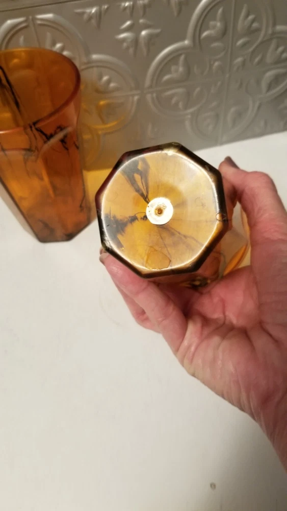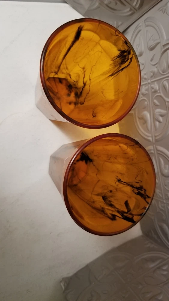 Set of 2 Durable Vintage Plastic Glasses Cup Tumblers 16 oz Amber Marbled 1970s