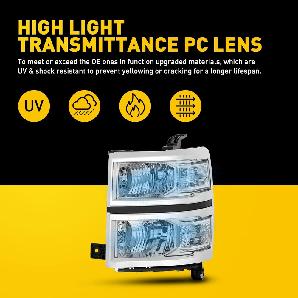 Fit for: 2014-2015 Chevy Silverado 1500 Models Only (Fit 2014 New Body Style Models Only; Does NOT Fit HD Models) Specifications: OE number: 20933724, 20933725, 20933722, 20933723, 23172782, 23172783 GM2502389, GM2503389, GM2502395, GM2503395, GM2502410 Material: ABS+PC (ABS Plastic Housing/Polycarbonate lens) Appearance color: 1.Housing Color: Chrome 2.Lens Color: Clear 3.Reflector Color: White Note: Projector × (Not include) DRL × ( Not Include) Bulb × (Not include) Set of 2 For Chevy 2014-2015 Silverado 1500 Chrome Housing Headlights Head EXA Fit for: 2014-2015 Chevy Silverado 1500 Models Only (Fit 2014 New Body Style Models Only; Does NOT Fit HD Models) Specifications: OE number: 20933724, 20933725, 20933722, 20933723, 23172782, 23172783 GM2502389, GM2503389, GM2502395, GM2503395, GM2502410 Material: ABS+PC (ABS Plastic Housing/Polycarbonate lens) Appearance color: 1.Housing Color: Chrome 2.Lens Color: Clear 3.Reflector Color: White Note: Projector × (Not include) DRL × ( Not Include) Bulb × (Not include) Features: *Easy to install: Direct replacement, drilling and cutting are not required. *Superior quality: Made of ABS and PC materials with toughness and heat resistance functions to ensure its long service life and durability. *Angle adjustment: Equipped with a headlamp Angle adjustment knob, you can adjust the best Angle of view through the knob. Suggestion: 1.Please confirm the OE number before purchasing!!! 2.Professional installation is required!!! Package Included: Headlights *2 (Left+Right) Item Specifics Number of Pieces 2 Type Headlight Assembly OE/OEM Part Number 20933724, 20933725, 20933722, 20933723, 23172782, 23172783 Fitment for 2014-2015 Chevy Silverado 1500 Models Only Attention Fit 2014 New Body Style Models Only; Does NOT Fit HD Models Manufacturer Warranty 1 Year Universal Fitment No Interchange Part Number GM2502389, GM2503389, GM2502395, GM2503395, GM2502410 Fitment Type Direct Replacement Brand Unbranded OE/OEM Part Number 20933724, 20933725, 20933722, 20933723, 23172782, 23172783 Fitment for 2014-2015 Chevy Silverado 1500 Models Only Attention Fit 2014 New Body Style Models Only; Does NOT Fit HD Models Manufacturer Warranty 1 Year Universal Fitment No Interchange Part Number GM2502389, GM2503389, GM2502395, GM2503395, GM2502410 Fitment Type Direct Replacement Payment We only accept PayPal payment, should be received within 3 days from the date of purchase. Please keep the consistency of Paypal address and ebay address. Payment should be made within 4 days once you won a item ,or ebay will launch Unpaid Reminder agaist you and there will be bad record on your ebay account . Buyers are responsible for import duties, custom fees and taxes.Please check with your country's custom office to determine the additional costs before you finally make the purchase Shipping All items will be shipped in 48 hours after receiving your payment . We ship this item to US only via USPS first class mail. It usually takes 3-6 working days to deliver. Returns We offer 30 days return policy. Please contact us within 30 days t from the date you receive your order if you have any issues with the product or want return .Refund will be send after we got your resend package. All returned items should be in the original packaging , return tracking information should be provided .. Buyer is responsible for return shipping cost due to the problem not caused by item quality itself . Contact Us Our office hours are MONDAY - FRIDAY 9:00PM - 6:00PM PST, but we will response you once we get your message .There will be some delay on response if you send message or E-Mail on weekend. FAQ Q1: Will this bulb fit my vehicle? A: We can match almost any vehicle to one of our bulb sizes. eBay only lets us include partial vehicle fitments per listing, but if your vehicle does not show up on the compatibility table at the top of our listings, welcome you to contact us for free consulation before purchasing a product. Q2: My item has not arrived, what's taking so long? A: Sometimes items take longer than expected, especially if it’s going far or to rural area. Check with your post office to see if your item has been held up. Sometimes USPS will not update a tracking number until it has arrived at its destination. If your item still has not arrived after a few days, let us know so we can double check for you and help solve it asap. Q3: Do I need to mention the Year, Make and Model in the notes when place order? A: YES. Please include the Year, Make, and Model in the notes section during checkout to ensure you receive everything needed for your kit! Q4: My bulbs won't fit, help! A: Special bulb holder may be required. See if you can take the holder from the stock bulb. If not, let us know. The bulb size may be wrong, double check the item you received with the item you ordered. Do you have an aftermarket lighting housing? These may not be perfectly fitted for aftermarket bulbs and will require some manual modifications. Q5: Neither side lighting up? Both sides flicker, flash, or work inconsistantly. A:Check the headlight fuses, and then check the ballast plugs to insure correct installation. If this doesn't work, there may be a voltage problem with the vehicle. You probably just need a relay or capacitor. Q6: WARNING ABOUT POLARITY Unlike halogen bulbs, LED are polarity sensitive. BEFORE you start your LED kit installation, verify the polarity on your vehicle by simply plugging the LED bulb into your vehicle socket. - if your light turns on, please proceed to install both bulbs onto your vehicle. - if your light DOES NOT turn on, disconnect the bulb and flip the socket in order to reverse the polarity (this will not damage your vehicle electrical system in any way). Once you made sure the LED bulb turns on, please proceed to install both bulbs onto your vehicle. Note: There is no convention when it comes to polarity. Different car manufactures have different polarity setup, even within the car model th