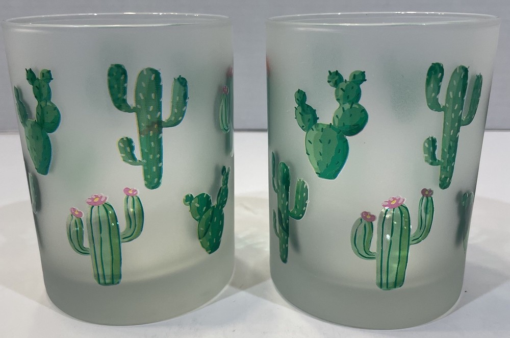 This set of 2 frosted desert cactus double old-fashioned rocks glasses is perfect for adding a touch of novelty to your home bar. The round shape and frosted color make them stylish for all occasions. Made of glass and featuring an etched cactus pattern, these whiskey and cocktail glasses are a unique addition to any collection. With a set includes of whiskey glass, old-fashioned glass, and cocktail glass, this two-piece set is ideal for serving drinks to friends and family in style.